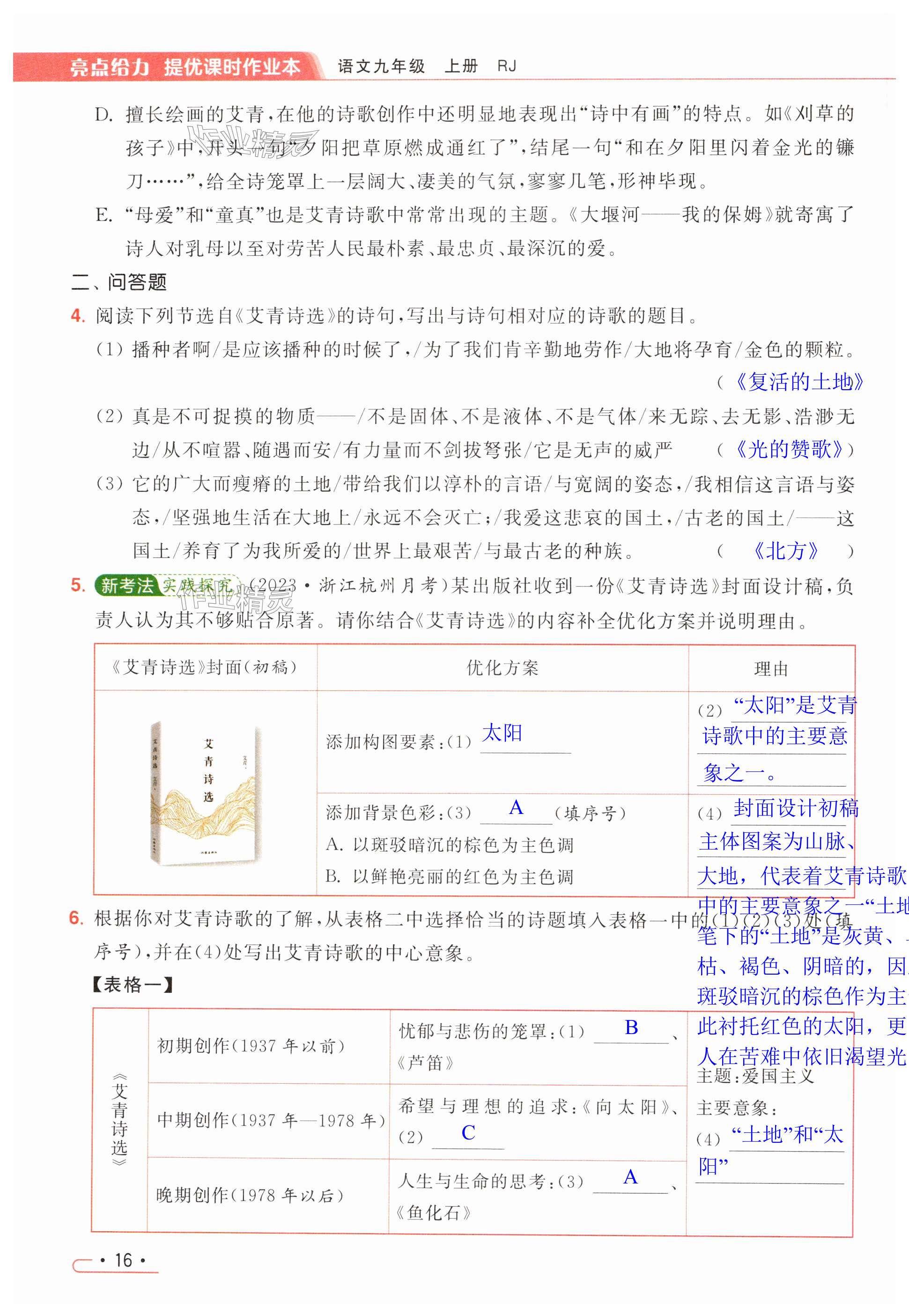 注:目前有些书本章节名称可能整理的还不是很完善,但都是按照顺序排列的,请同学们按照顺序仔细查找。练习册 2024年亮点给力提优课时作业本九年级语文上册人教版 答案主要是用来给同学们做完题方便对答案用的,请勿直接抄袭。