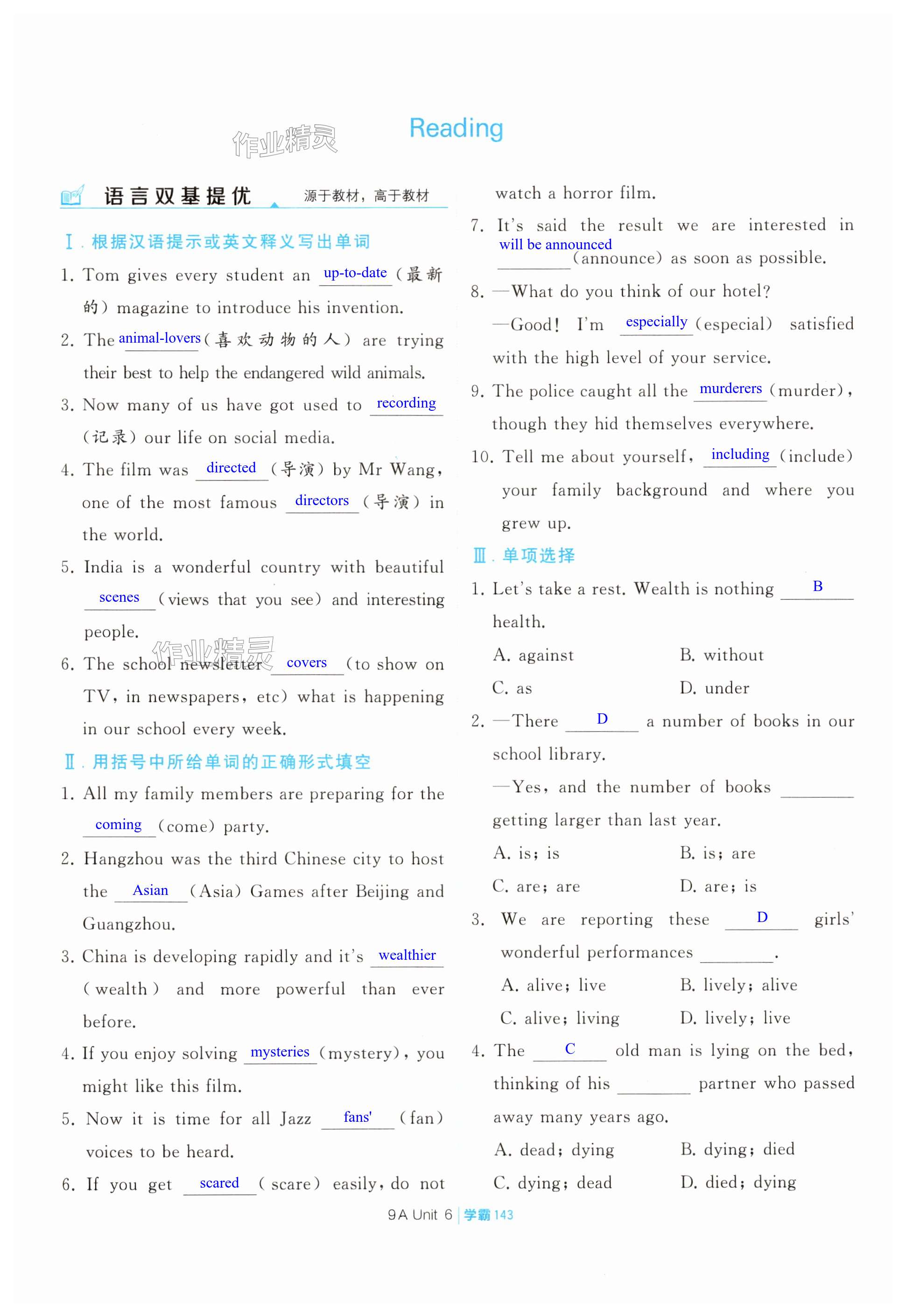 注:目前有些书本章节名称可能整理的还不是很完善,但都是按照顺序排列的,请同学们按照顺序仔细查找。练习册 2024年学霸题中题九年级英语上册译林版 答案主要是用来给同学们做完题方便对答案用的,请勿直接抄袭。