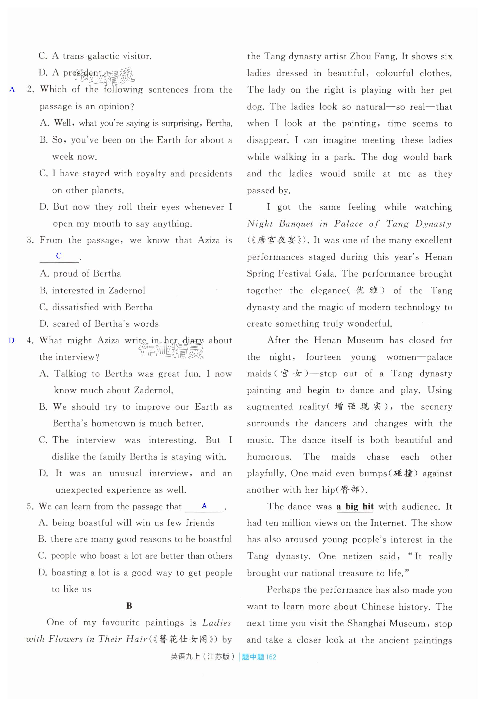 注:目前有些书本章节名称可能整理的还不是很完善,但都是按照顺序排列的,请同学们按照顺序仔细查找。练习册 2024年学霸题中题九年级英语上册译林版 答案主要是用来给同学们做完题方便对答案用的,请勿直接抄袭。