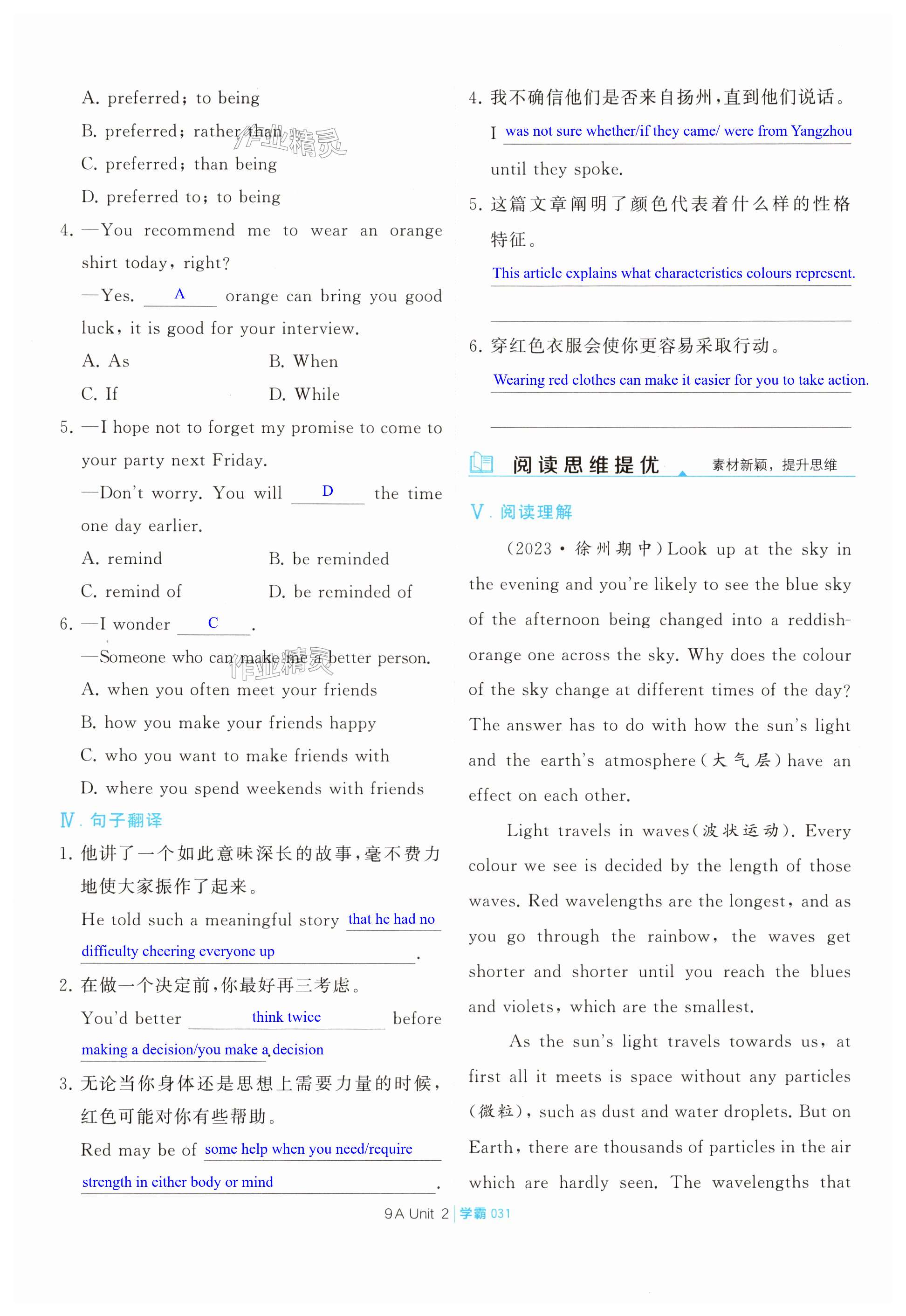 注:目前有些书本章节名称可能整理的还不是很完善,但都是按照顺序排列的,请同学们按照顺序仔细查找。练习册 2024年学霸题中题九年级英语上册译林版 答案主要是用来给同学们做完题方便对答案用的,请勿直接抄袭。