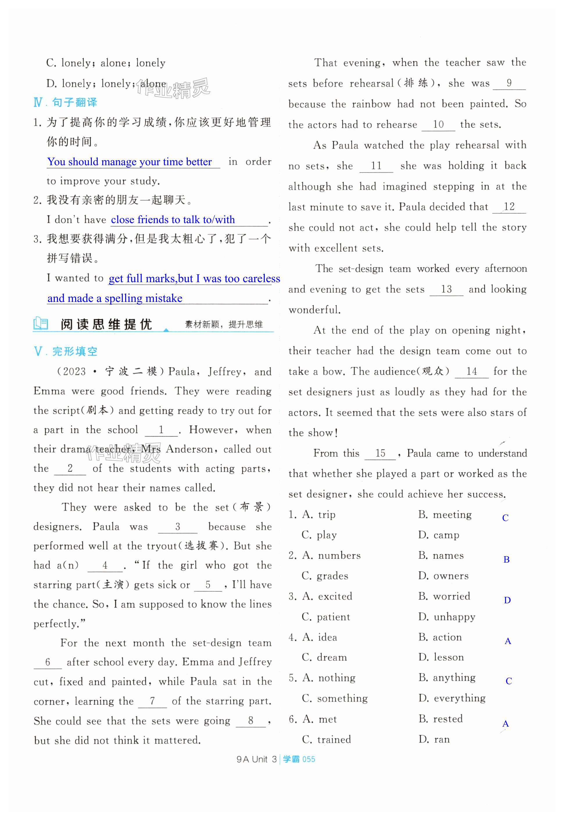 注:目前有些书本章节名称可能整理的还不是很完善,但都是按照顺序排列的,请同学们按照顺序仔细查找。练习册 2024年学霸题中题九年级英语上册译林版 答案主要是用来给同学们做完题方便对答案用的,请勿直接抄袭。