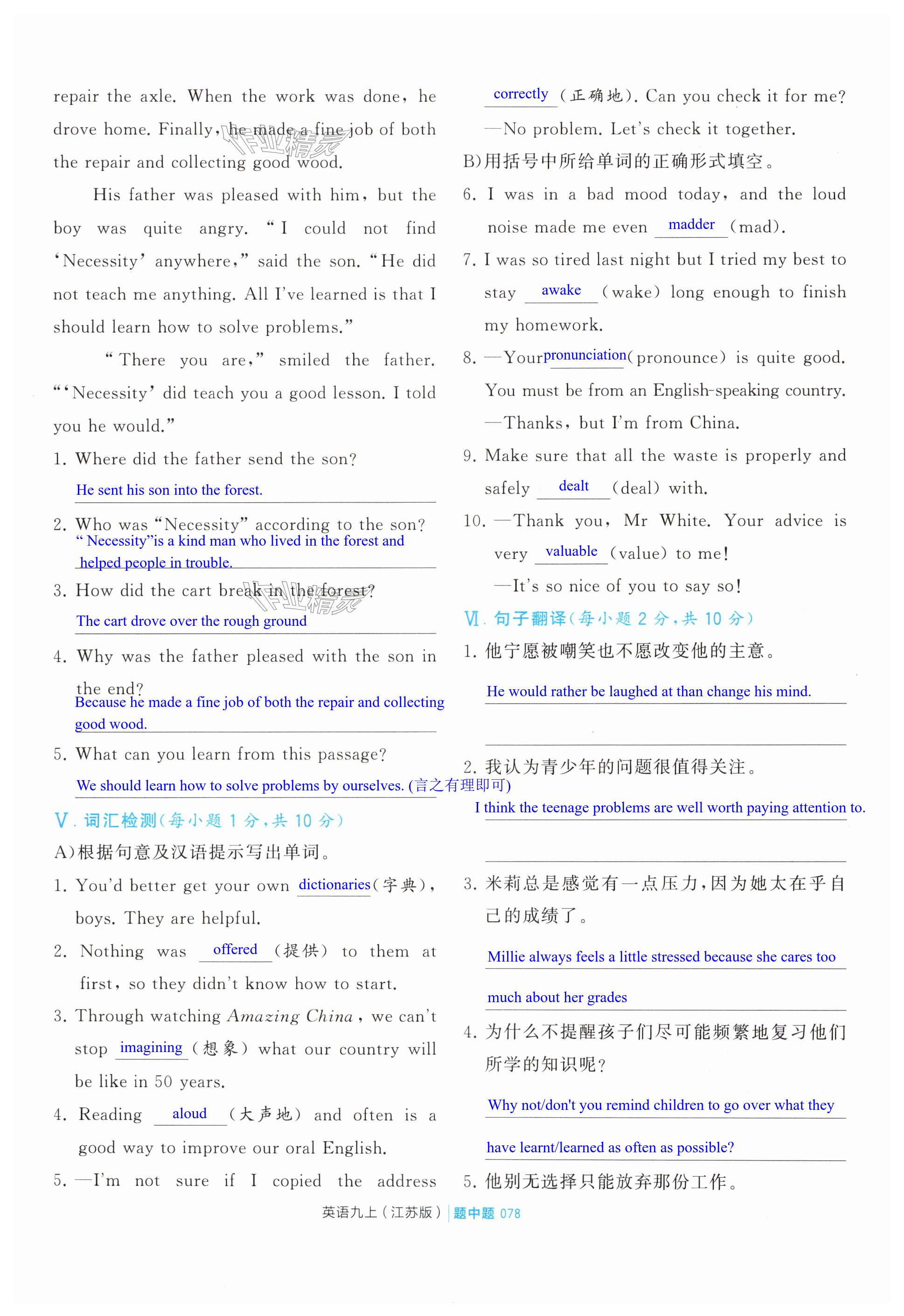 注:目前有些书本章节名称可能整理的还不是很完善,但都是按照顺序排列的,请同学们按照顺序仔细查找。练习册 2024年学霸题中题九年级英语上册译林版 答案主要是用来给同学们做完题方便对答案用的,请勿直接抄袭。