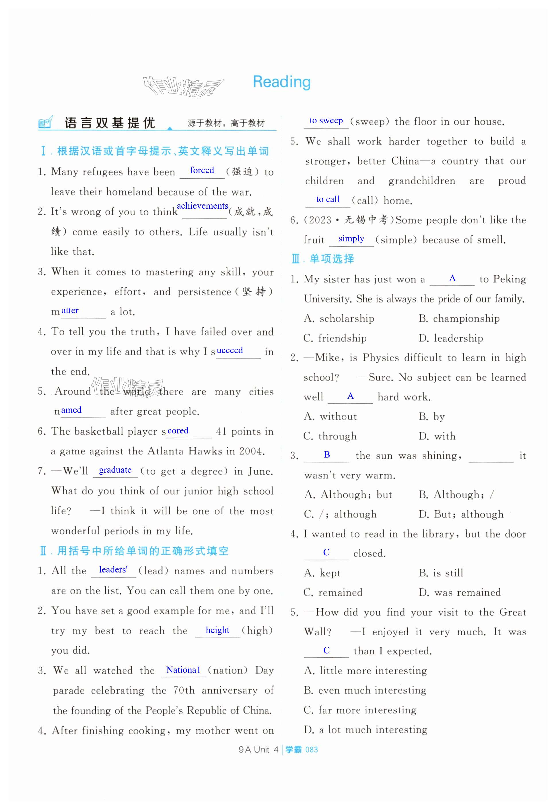 注:目前有些书本章节名称可能整理的还不是很完善,但都是按照顺序排列的,请同学们按照顺序仔细查找。练习册 2024年学霸题中题九年级英语上册译林版 答案主要是用来给同学们做完题方便对答案用的,请勿直接抄袭。