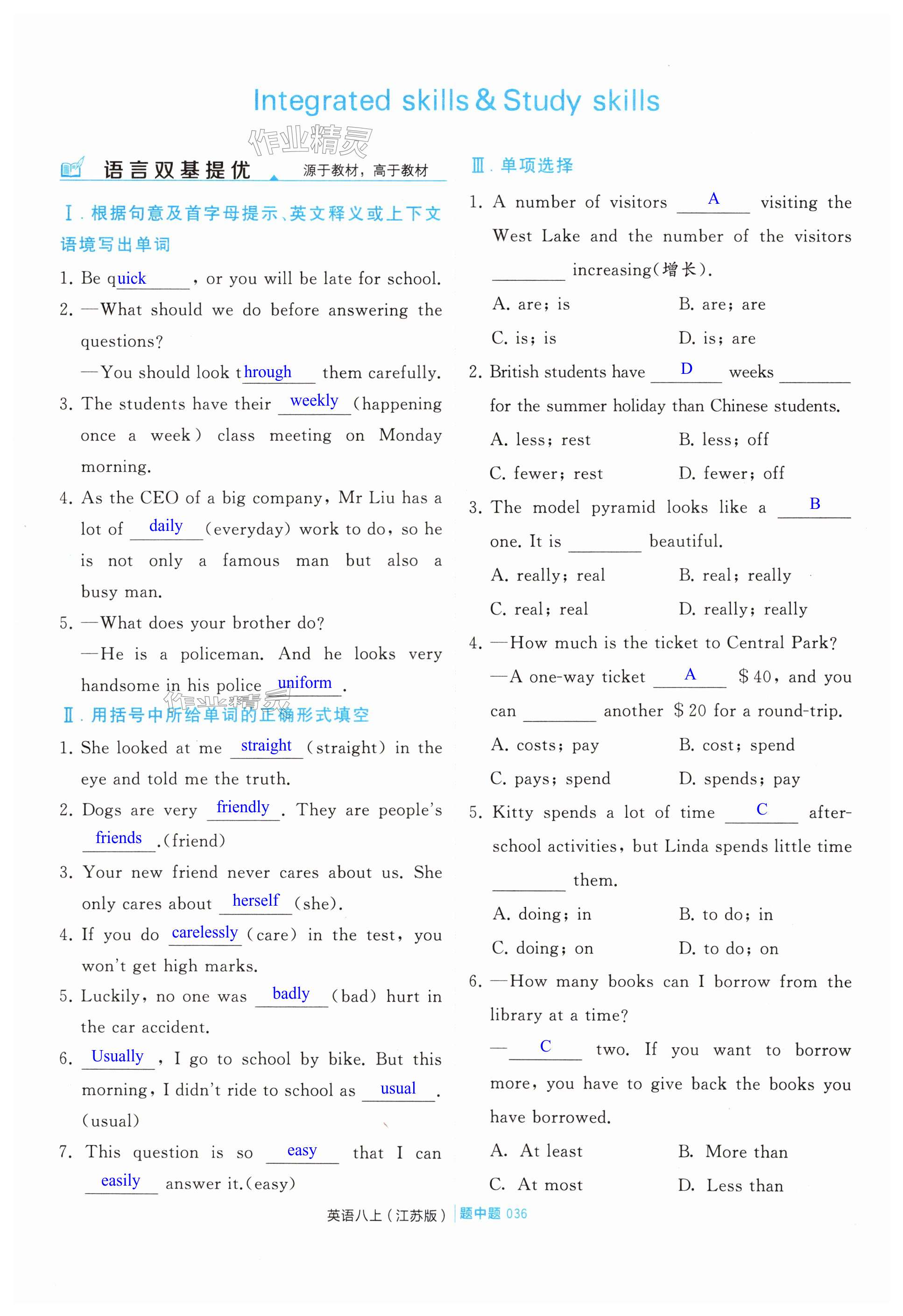 注:目前有些书本章节名称可能整理的还不是很完善,但都是按照顺序排列的,请同学们按照顺序仔细查找。练习册 2024年学霸题中题八年级英语上册译林版 答案主要是用来给同学们做完题方便对答案用的,请勿直接抄袭。