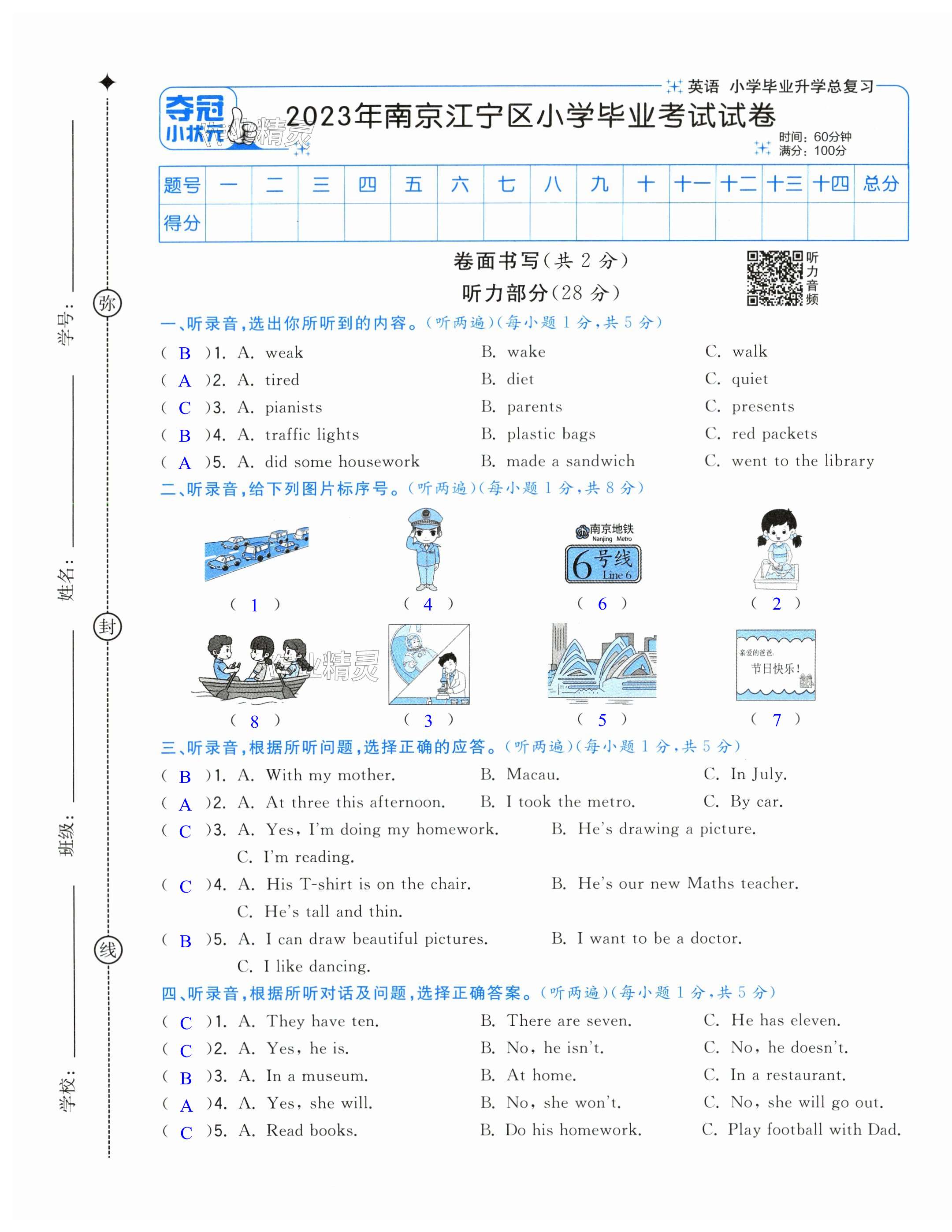 注:目前有些书本章节名称可能整理的还不是很完善,但都是按照顺序排列的,请同学们按照顺序仔细查找。练习册 2024年夺冠冲刺卷小学毕业升学总复习六年级英语 答案主要是用来给同学们做完题方便对答案用的,请勿直接抄袭。