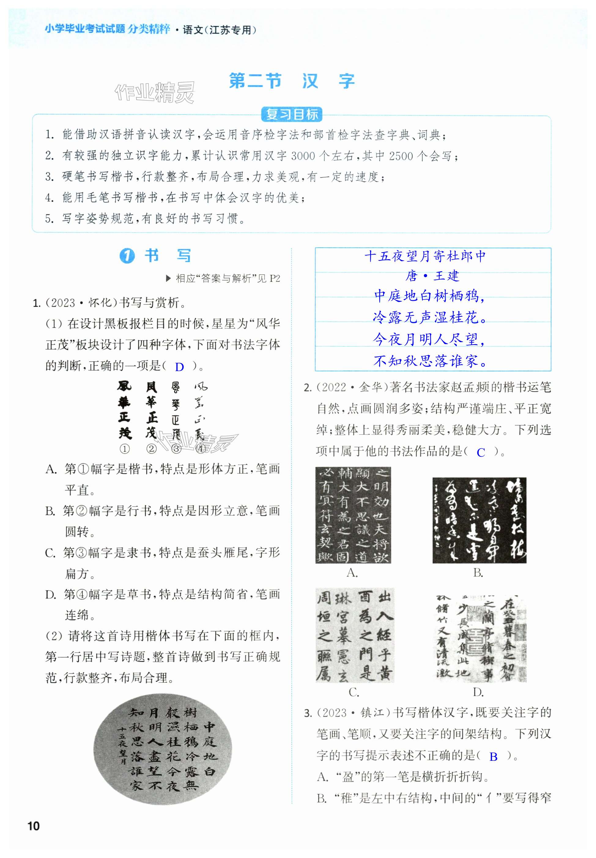 注:目前有些书本章节名称可能整理的还不是很完善,但都是按照顺序排列的,请同学们按照顺序仔细查找。练习册 2024年通城学典小学毕业考试试题分类精粹语文江苏专版 答案主要是用来给同学们做完题方便对答案用的,请勿直接抄袭。