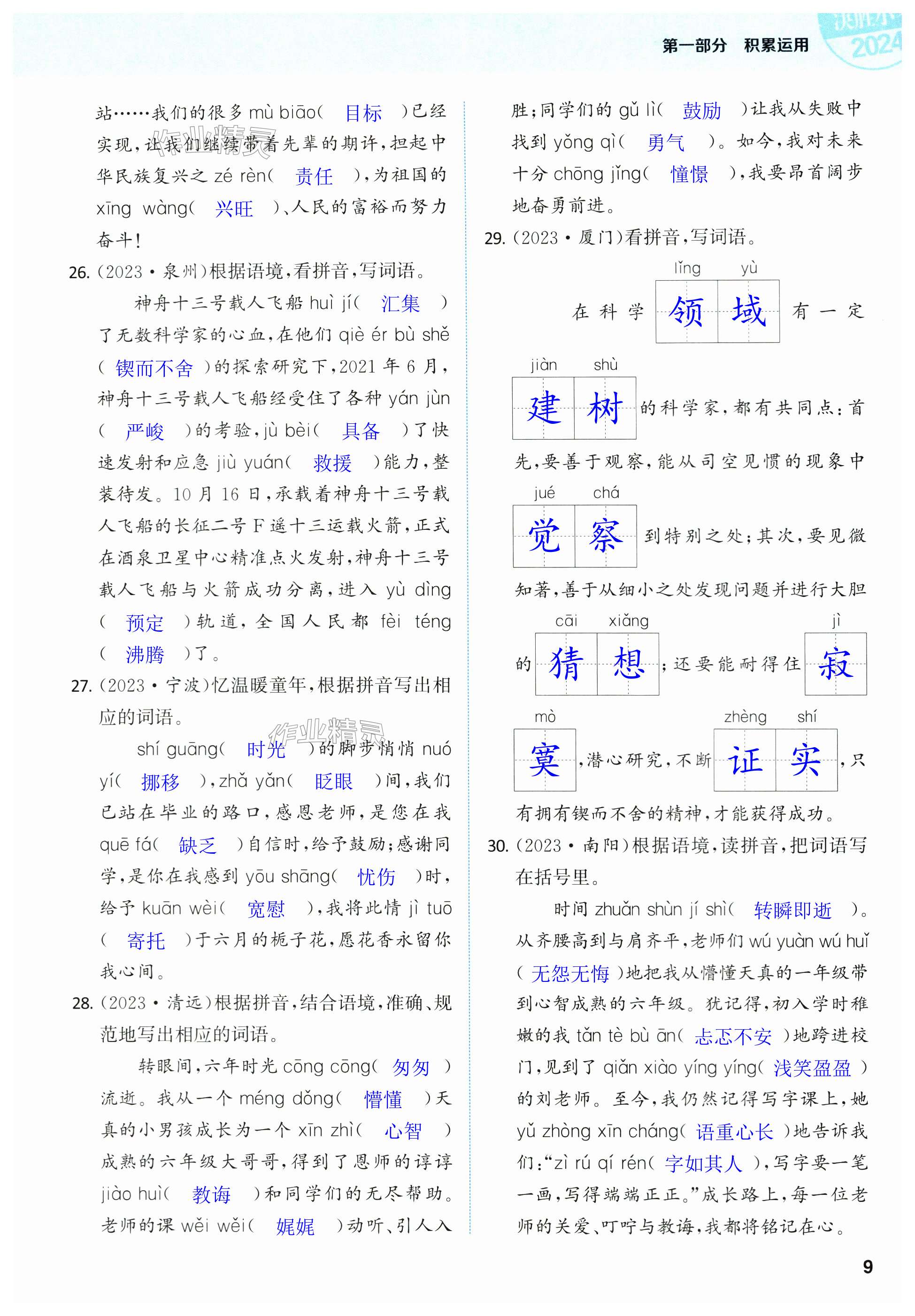 注:目前有些书本章节名称可能整理的还不是很完善,但都是按照顺序排列的,请同学们按照顺序仔细查找。练习册 2024年通城学典小学毕业考试试题分类精粹语文江苏专版 答案主要是用来给同学们做完题方便对答案用的,请勿直接抄袭。