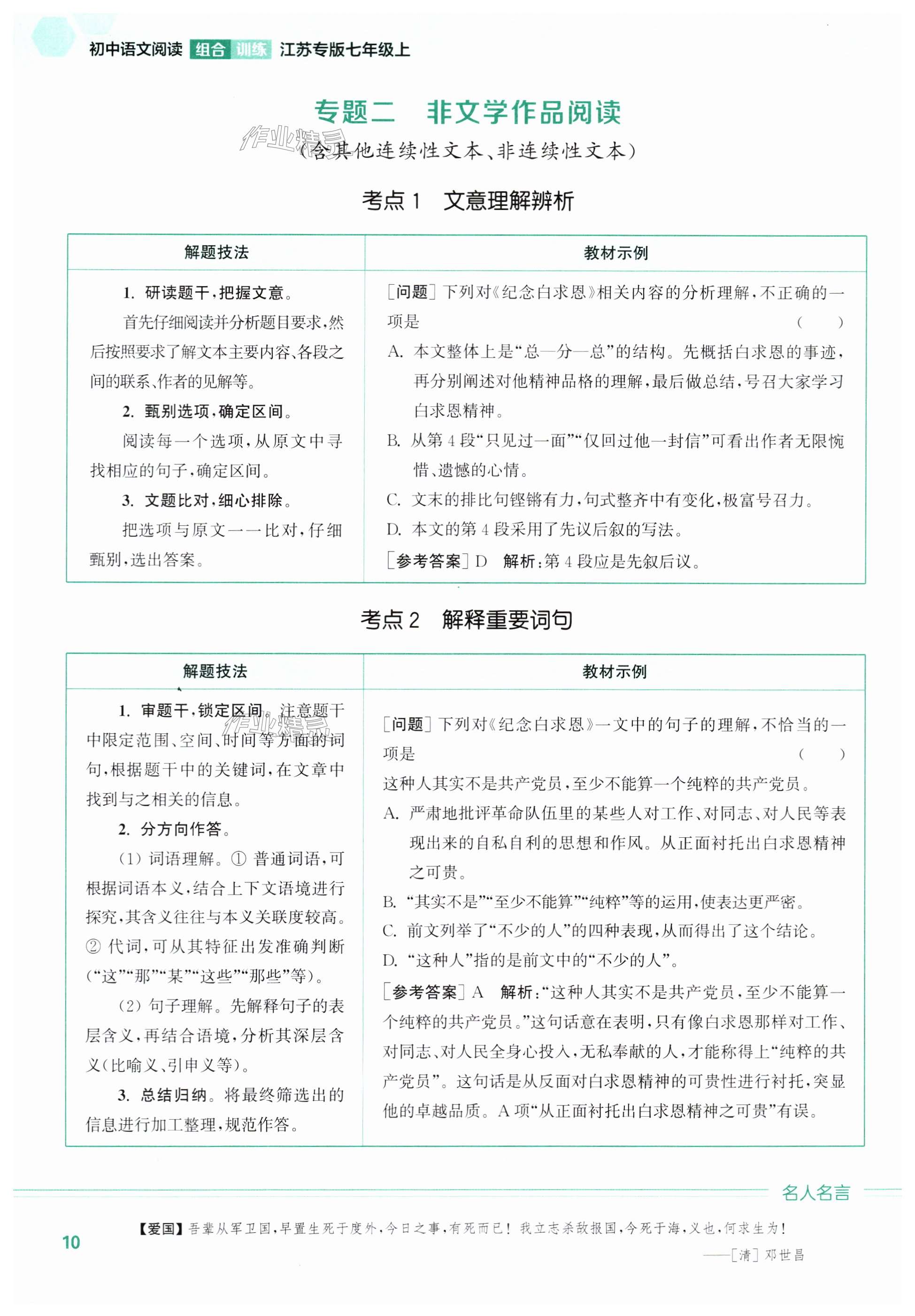 注:目前有些书本章节名称可能整理的还不是很完善,但都是按照顺序排列的,请同学们按照顺序仔细查找。练习册 2024年通城学典初中语文阅读组合训练七年级上册江苏专版 答案主要是用来给同学们做完题方便对答案用的,请勿直接抄袭。