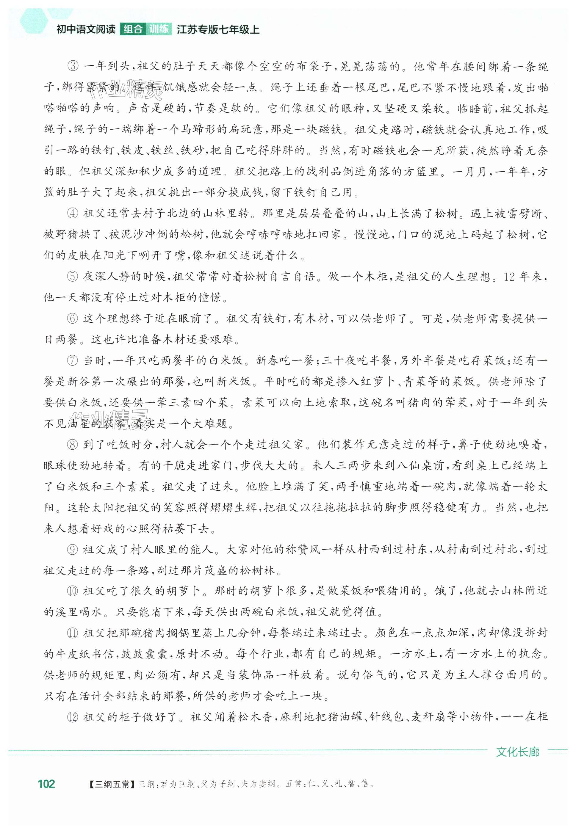 2024年通城学典初中语文阅读组合训练七年级上册江苏专版