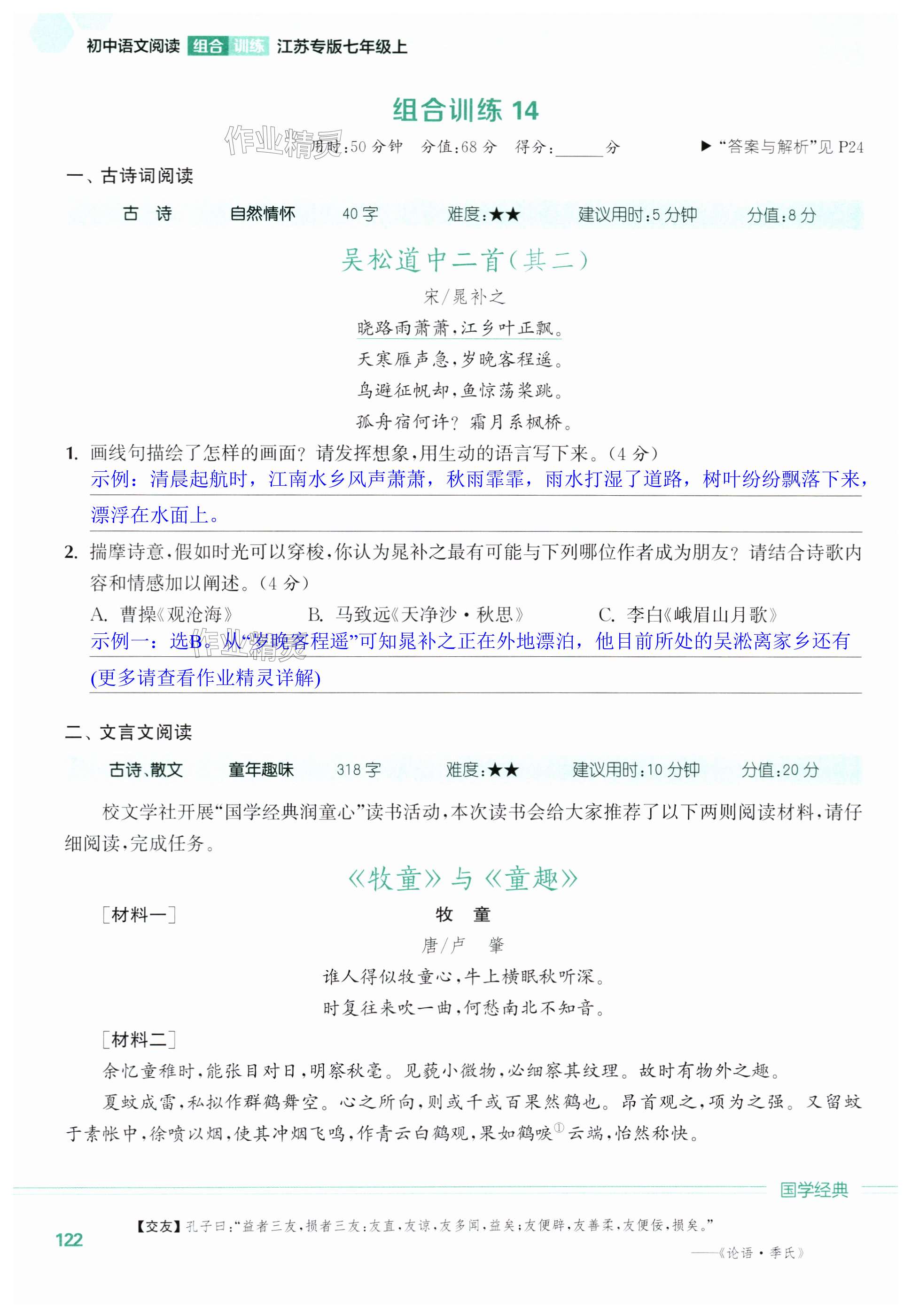 注:目前有些书本章节名称可能整理的还不是很完善,但都是按照顺序排列的,请同学们按照顺序仔细查找。练习册 2024年通城学典初中语文阅读组合训练七年级上册江苏专版 答案主要是用来给同学们做完题方便对答案用的,请勿直接抄袭。