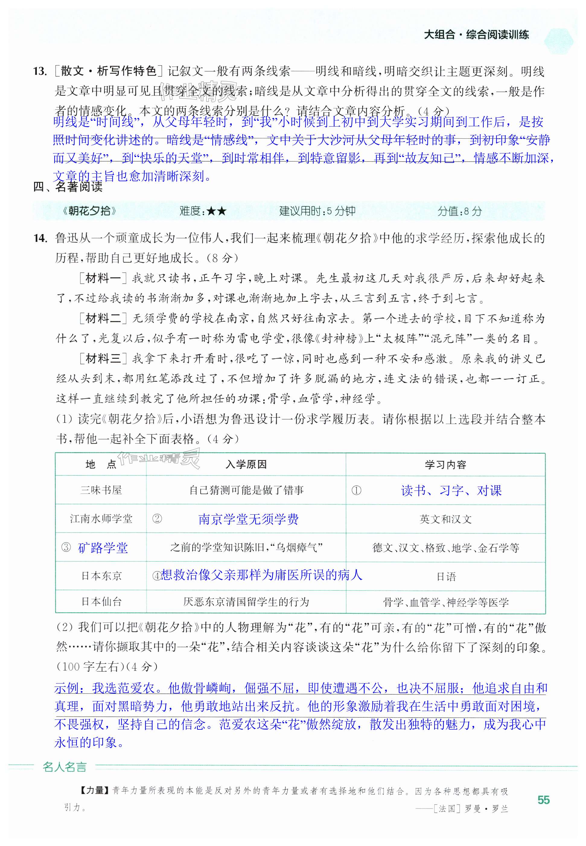 注:目前有些书本章节名称可能整理的还不是很完善,但都是按照顺序排列的,请同学们按照顺序仔细查找。练习册 2024年通城学典初中语文阅读组合训练七年级上册江苏专版 答案主要是用来给同学们做完题方便对答案用的,请勿直接抄袭。