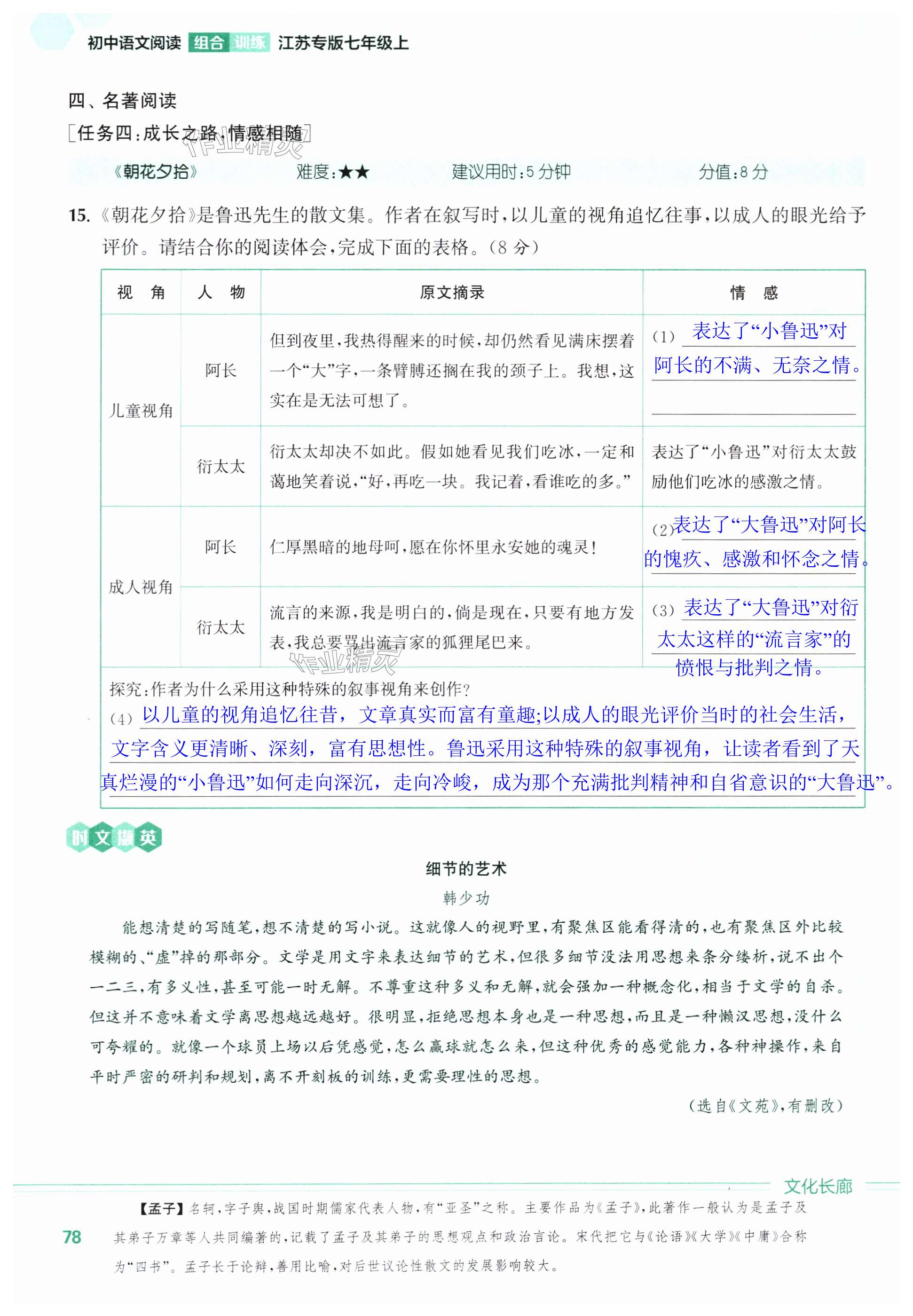 注:目前有些书本章节名称可能整理的还不是很完善,但都是按照顺序排列的,请同学们按照顺序仔细查找。练习册 2024年通城学典初中语文阅读组合训练七年级上册江苏专版 答案主要是用来给同学们做完题方便对答案用的,请勿直接抄袭。