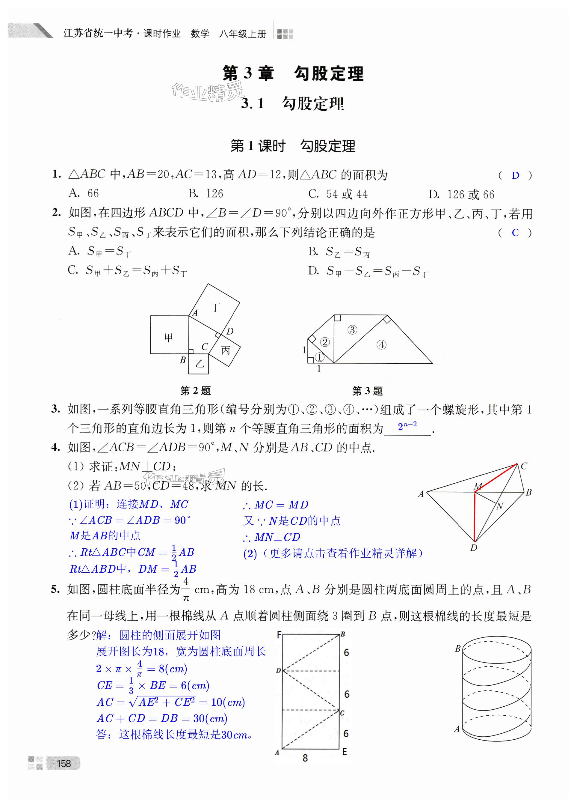 注:目前有些书本章节名称可能整理的还不是很完善,但都是按照顺序排列的,请同学们按照顺序仔细查找。练习册 2024年江苏省统一中考课时作业八年级数学上册苏科版 答案主要是用来给同学们做完题方便对答案用的,请勿直接抄袭。