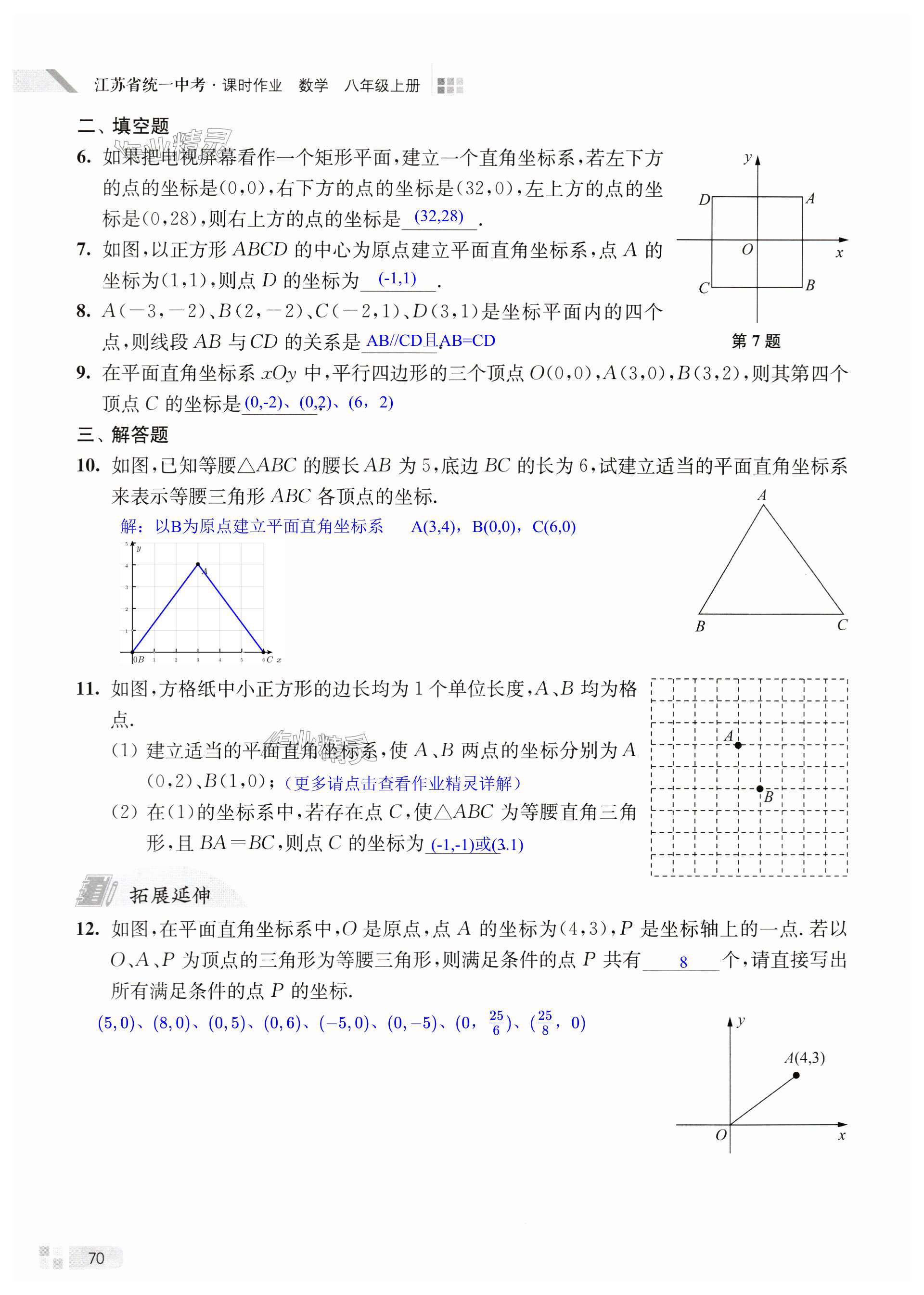 注:目前有些书本章节名称可能整理的还不是很完善,但都是按照顺序排列的,请同学们按照顺序仔细查找。练习册 2024年江苏省统一中考课时作业八年级数学上册苏科版 答案主要是用来给同学们做完题方便对答案用的,请勿直接抄袭。