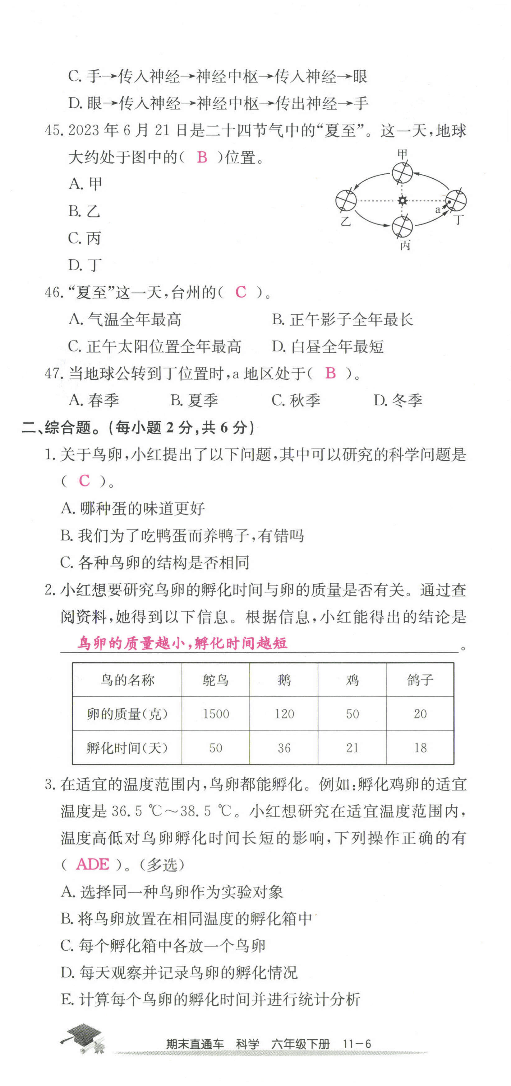 注:目前有些书本章节名称可能整理的还不是很完善,但都是按照顺序排列的,请同学们按照顺序仔细查找。练习册 2024年期末直通车六年级科学下册教科版 答案主要是用来给同学们做完题方便对答案用的,请勿直接抄袭。