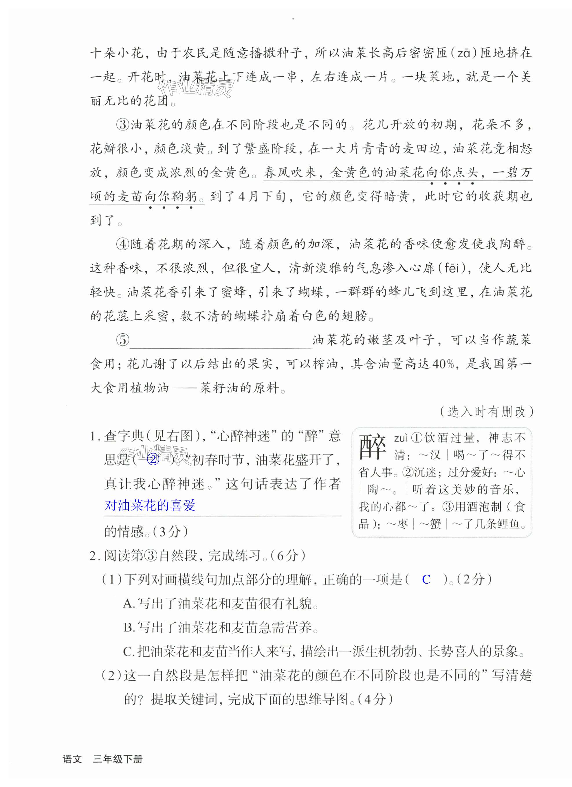注:目前有些书本章节名称可能整理的还不是很完善,但都是按照顺序排列的,请同学们按照顺序仔细查找。练习册 2024年知行合期末必刷题三年级语文下册人教版 答案主要是用来给同学们做完题方便对答案用的,请勿直接抄袭。