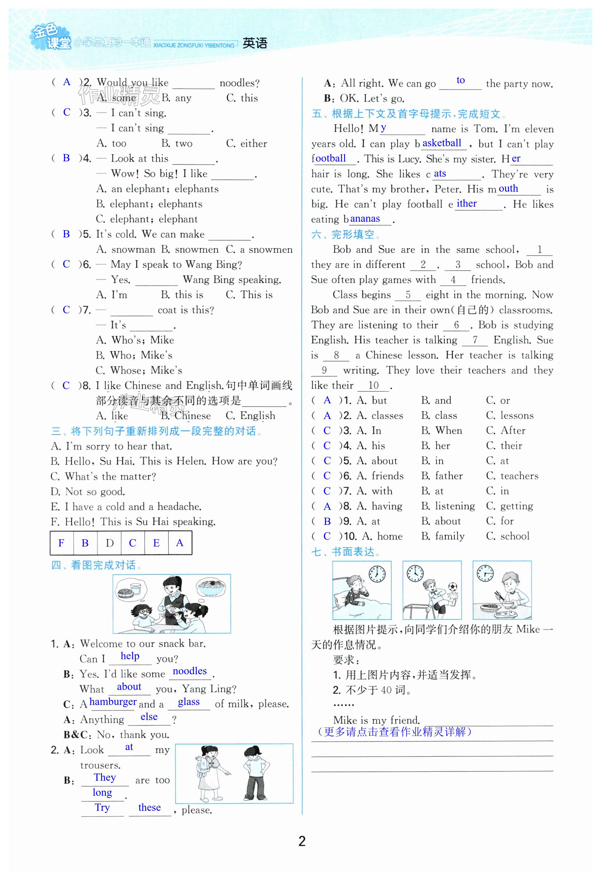 注:目前有些书本章节名称可能整理的还不是很完善,但都是按照顺序排列的,请同学们按照顺序仔细查找。练习册 2024年金色课堂小学总复习一本通英语 答案主要是用来给同学们做完题方便对答案用的,请勿直接抄袭。