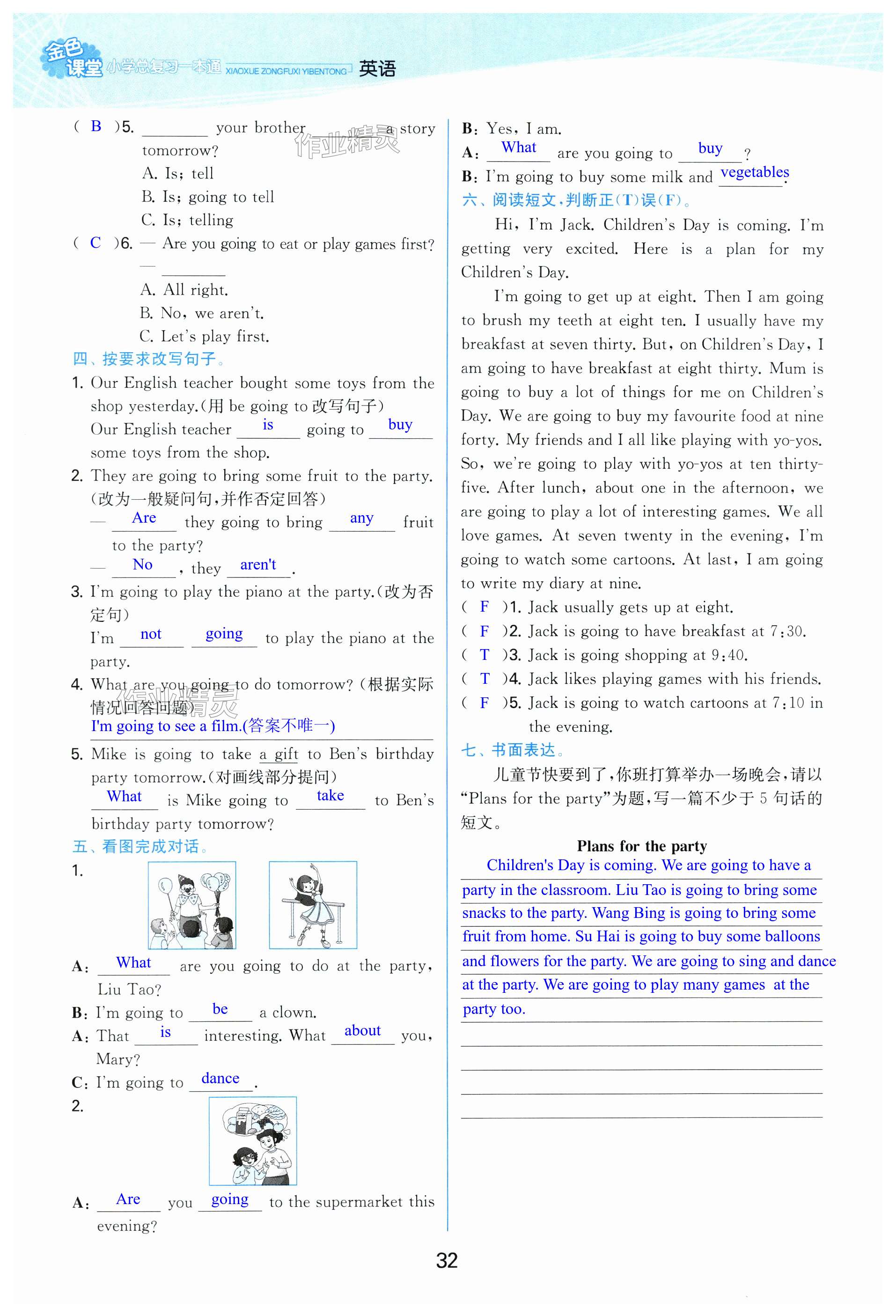 注:目前有些书本章节名称可能整理的还不是很完善,但都是按照顺序排列的,请同学们按照顺序仔细查找。练习册 2024年金色课堂小学总复习一本通英语 答案主要是用来给同学们做完题方便对答案用的,请勿直接抄袭。
