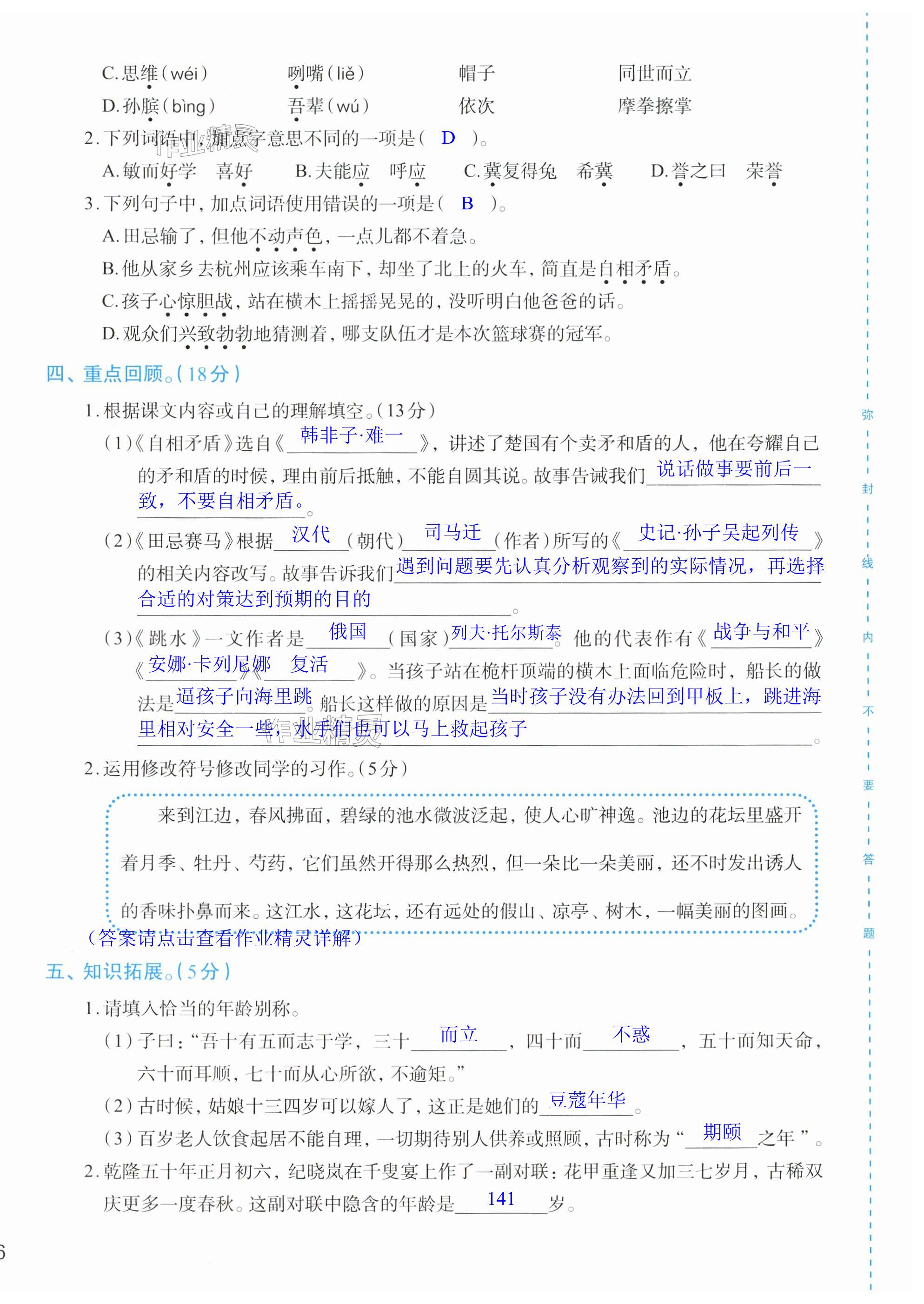 注:目前有些书本章节名称可能整理的还不是很完善,但都是按照顺序排列的,请同学们按照顺序仔细查找。练习册 2024年知行合期末必刷题五年级语文下册人教版 答案主要是用来给同学们做完题方便对答案用的,请勿直接抄袭。