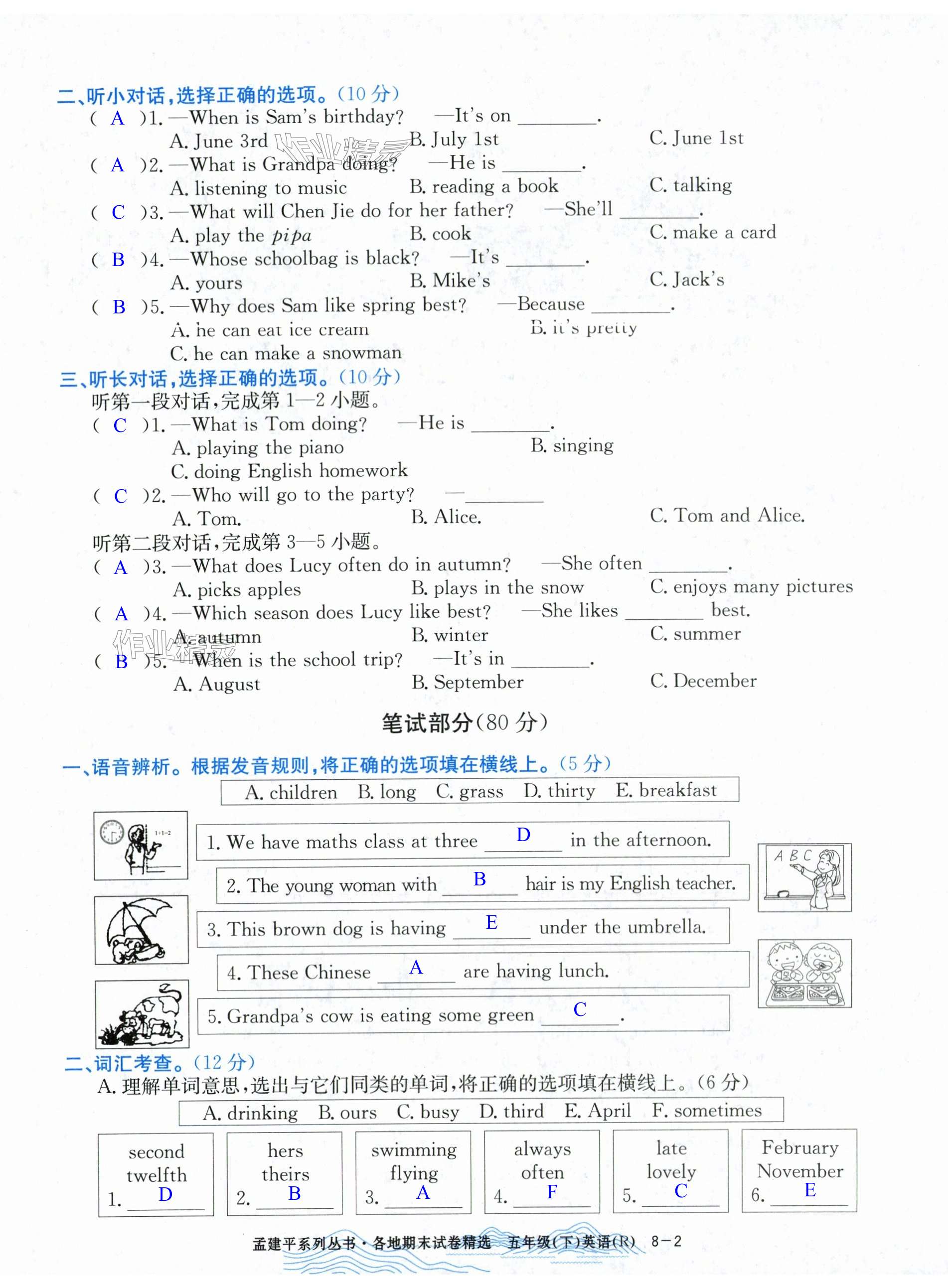 《2024年孟建平各地期末试卷精选五年级英语下册人教版》