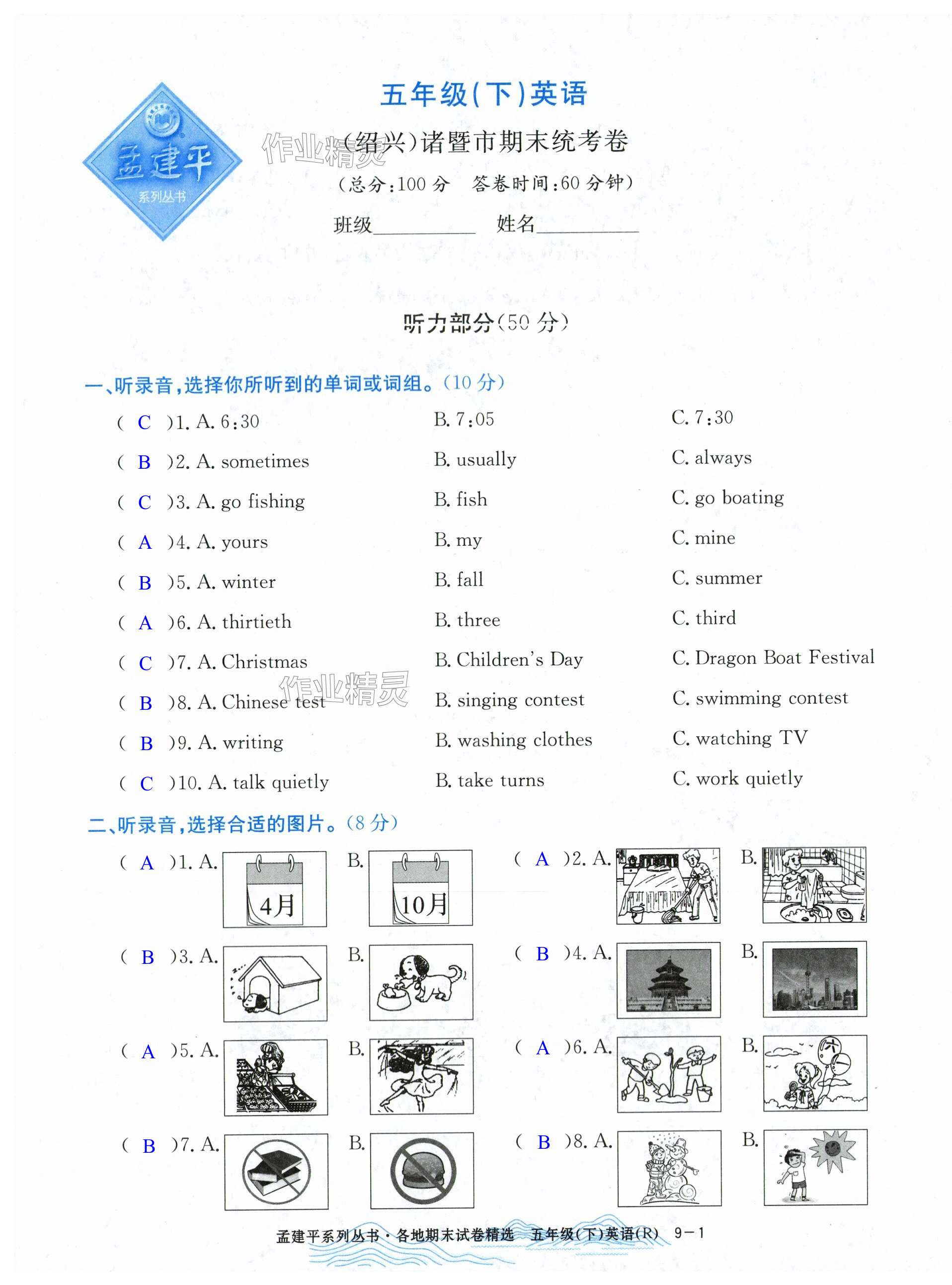 注:目前有些书本章节名称可能整理的还不是很完善,但都是按照顺序排列的,请同学们按照顺序仔细查找。练习册 2024年孟建平各地期末试卷精选五年级英语下册人教版 答案主要是用来给同学们做完题方便对答案用的,请勿直接抄袭。