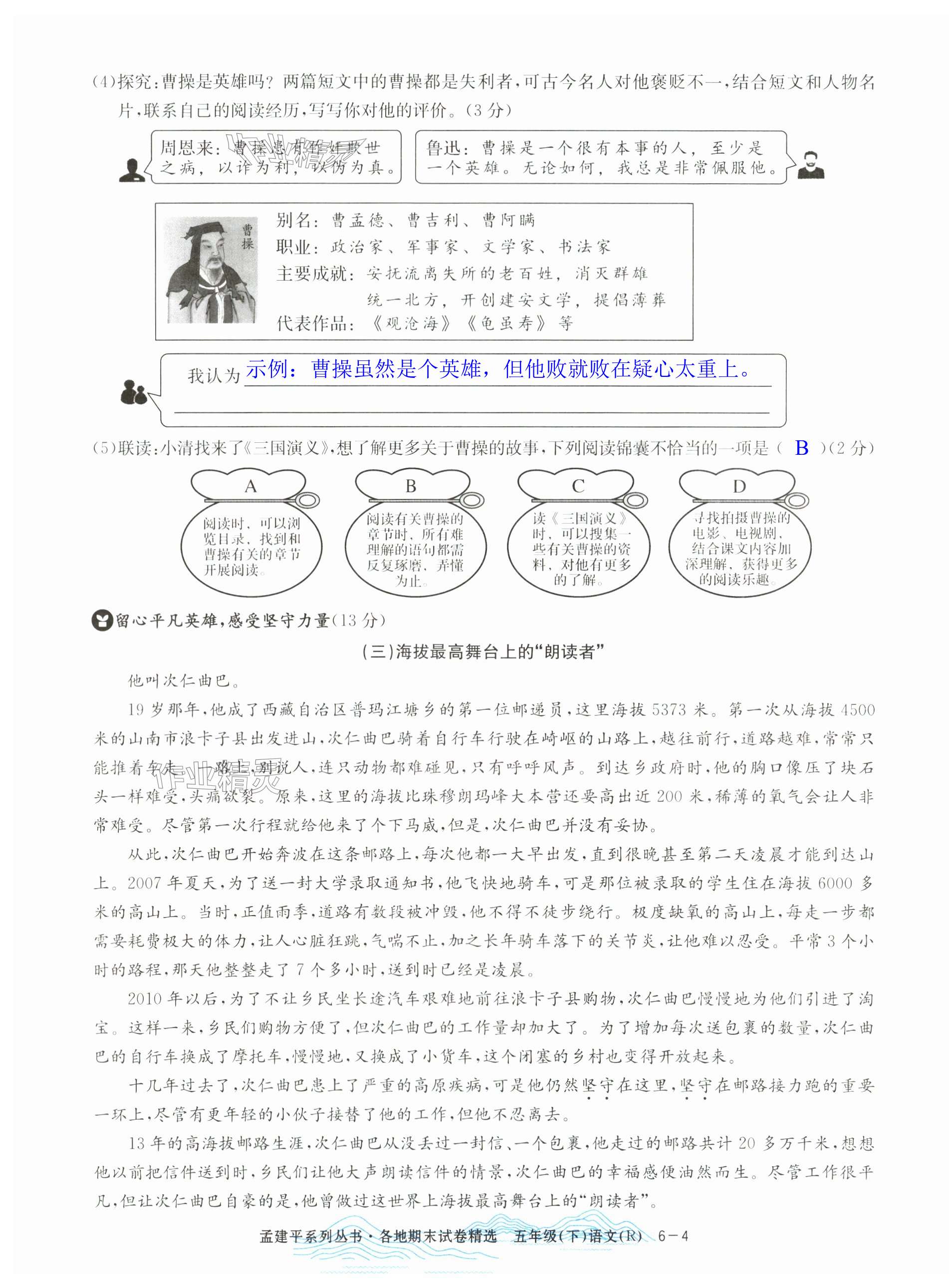 2024年孟建平各地期末试卷精选五年级语文下册人教版