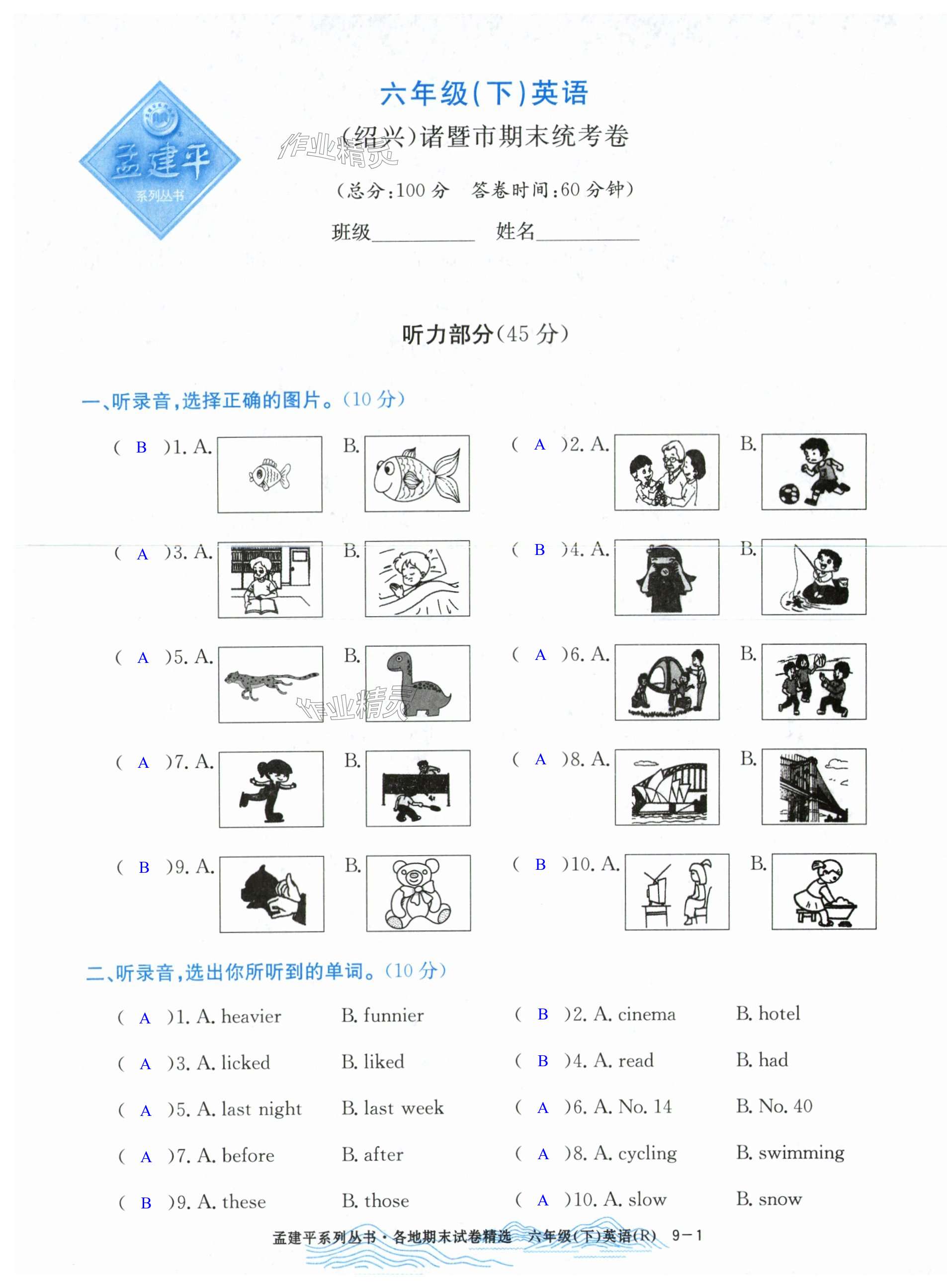 注:目前有些书本章节名称可能整理的还不是很完善,但都是按照顺序排列的,请同学们按照顺序仔细查找。练习册 2024年孟建平各地期末试卷精选六年级英语下册人教版 答案主要是用来给同学们做完题方便对答案用的,请勿直接抄袭。