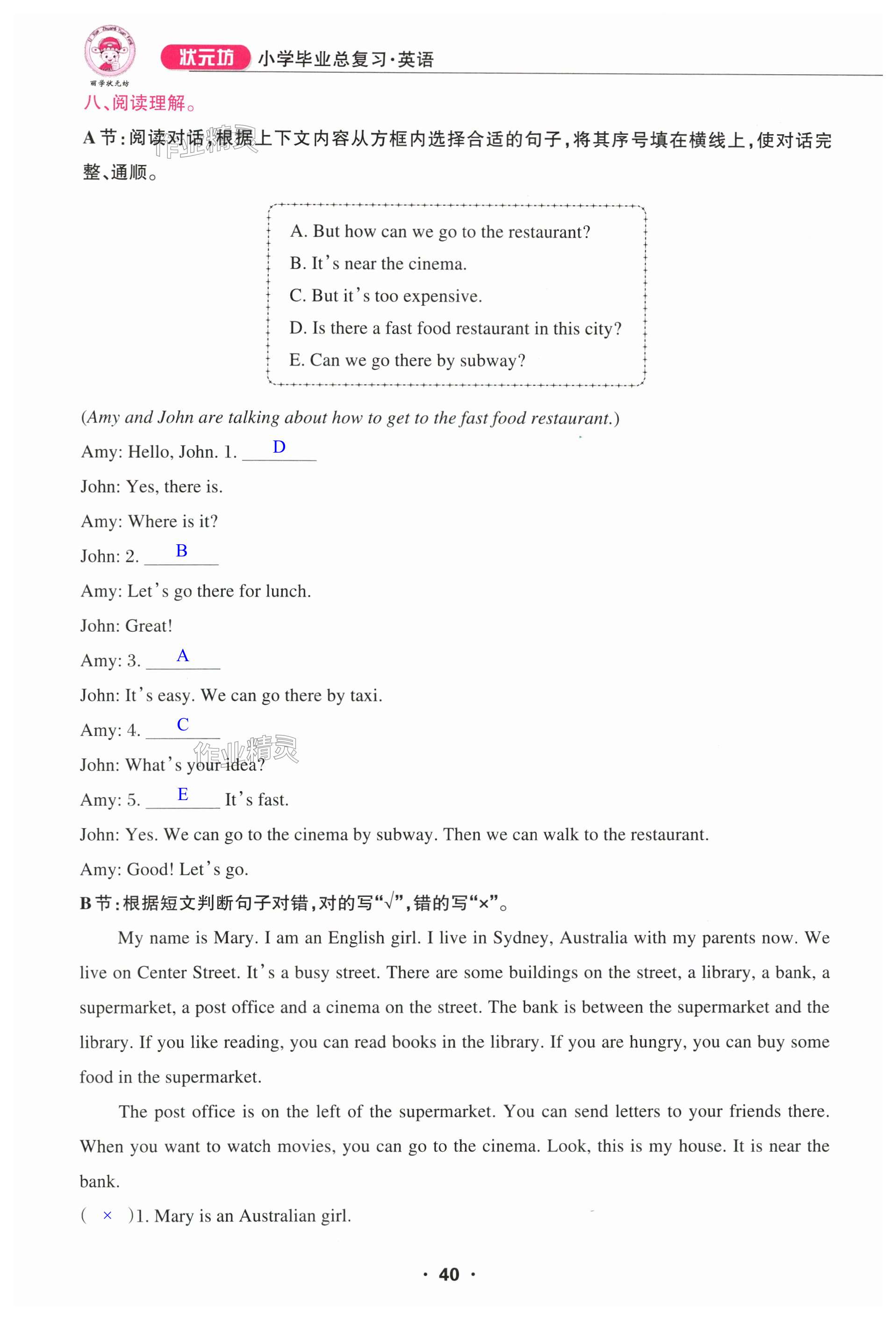 注:目前有些书本章节名称可能整理的还不是很完善,但都是按照顺序排列的,请同学们按照顺序仔细查找。练习册 2024年小学毕业总复习英语顺德专版 答案主要是用来给同学们做完题方便对答案用的,请勿直接抄袭。