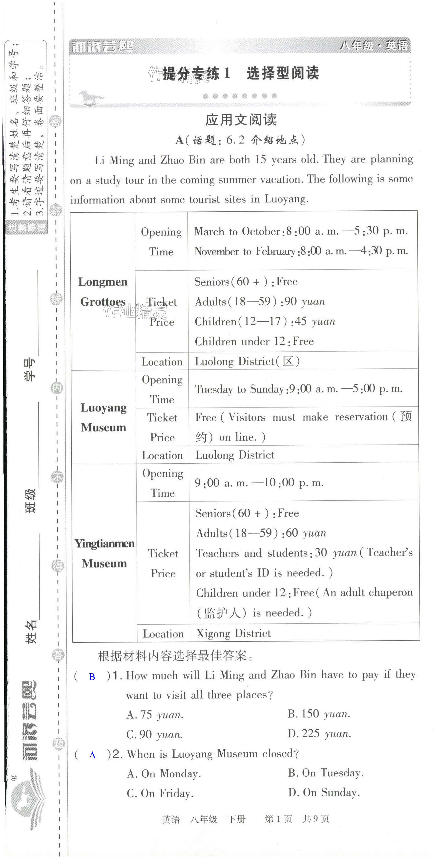 2024年期末考试必刷卷八年级英语下册人教版洛阳专版 参考答案第1页