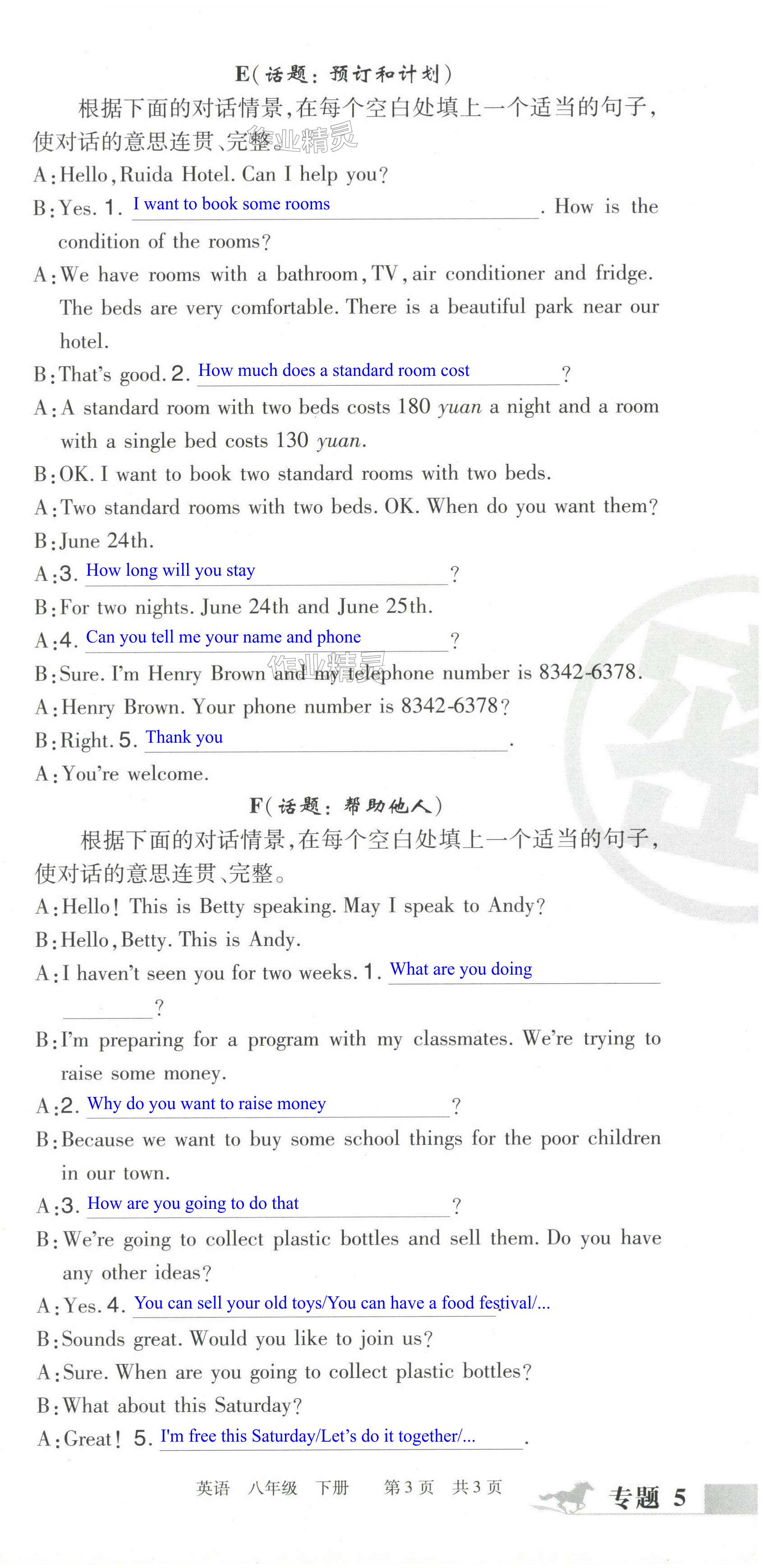 注:目前有些书本章节名称可能整理的还不是很完善,但都是按照顺序排列的,请同学们按照顺序仔细查找。练习册 2024年期末考试必刷卷八年级英语下册人教版洛阳专版 答案主要是用来给同学们做完题方便对答案用的,请勿直接抄袭。