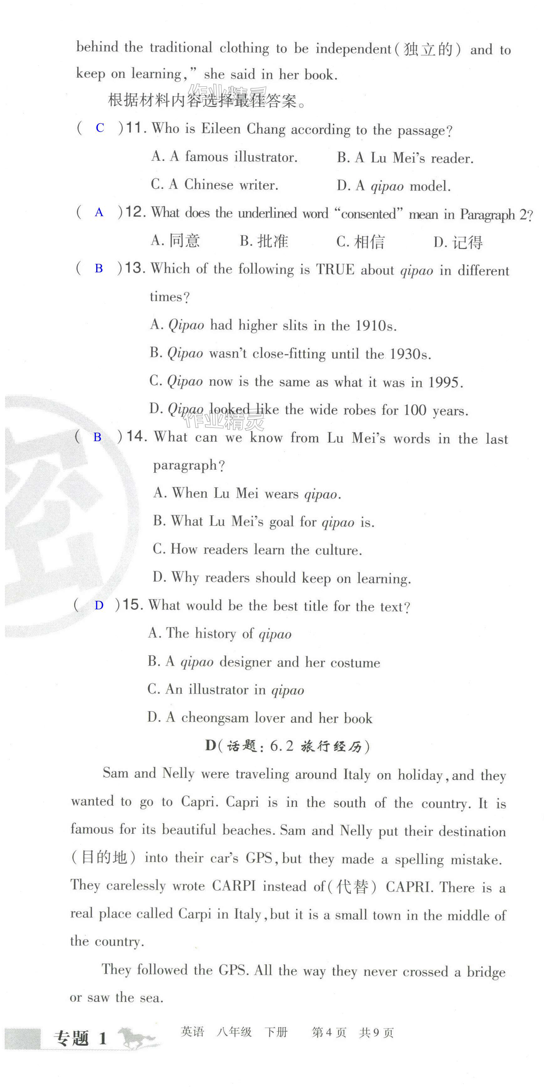 注:目前有些书本章节名称可能整理的还不是很完善,但都是按照顺序排列的,请同学们按照顺序仔细查找。练习册 2024年期末考试必刷卷八年级英语下册人教版洛阳专版 答案主要是用来给同学们做完题方便对答案用的,请勿直接抄袭。