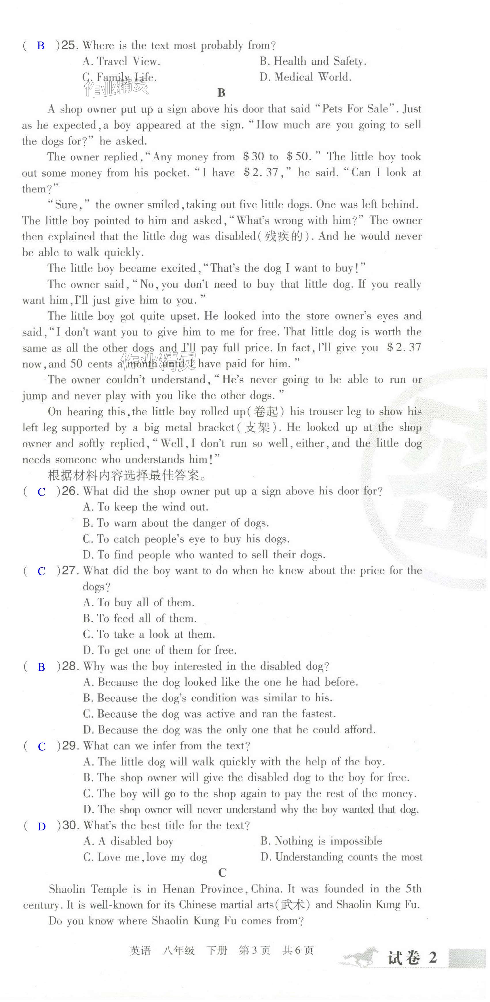 注:目前有些书本章节名称可能整理的还不是很完善,但都是按照顺序排列的,请同学们按照顺序仔细查找。练习册 2024年期末考试必刷卷八年级英语下册人教版洛阳专版 答案主要是用来给同学们做完题方便对答案用的,请勿直接抄袭。