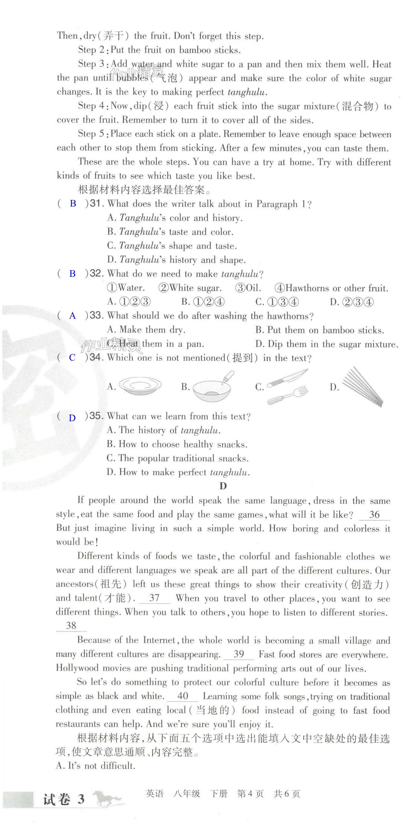 注:目前有些书本章节名称可能整理的还不是很完善,但都是按照顺序排列的,请同学们按照顺序仔细查找。练习册 2024年期末考试必刷卷八年级英语下册人教版洛阳专版 答案主要是用来给同学们做完题方便对答案用的,请勿直接抄袭。