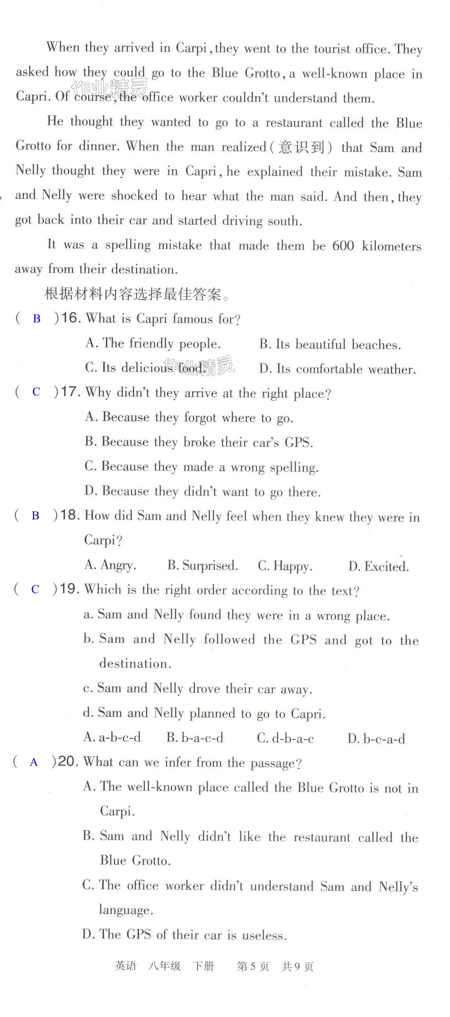 注:目前有些书本章节名称可能整理的还不是很完善,但都是按照顺序排列的,请同学们按照顺序仔细查找。练习册 2024年期末考试必刷卷八年级英语下册人教版洛阳专版 答案主要是用来给同学们做完题方便对答案用的,请勿直接抄袭。