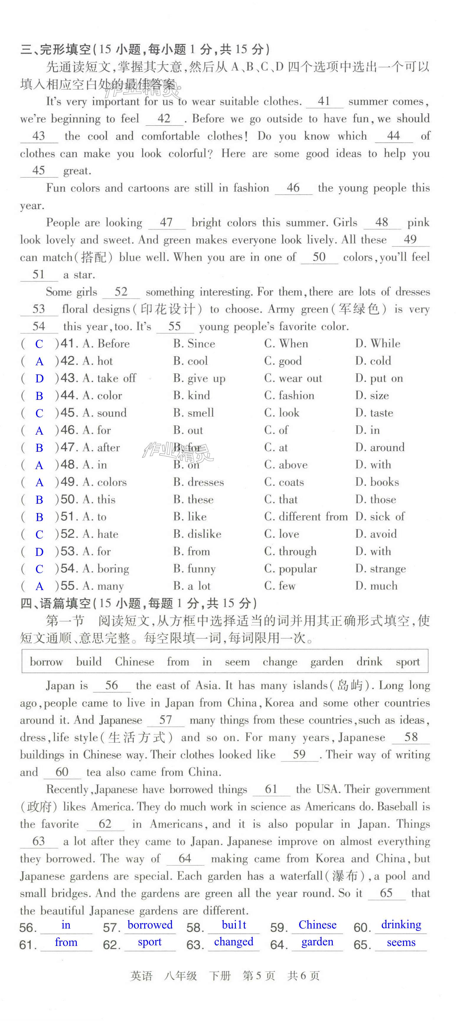 注:目前有些书本章节名称可能整理的还不是很完善,但都是按照顺序排列的,请同学们按照顺序仔细查找。练习册 2024年期末考试必刷卷八年级英语下册人教版洛阳专版 答案主要是用来给同学们做完题方便对答案用的,请勿直接抄袭。