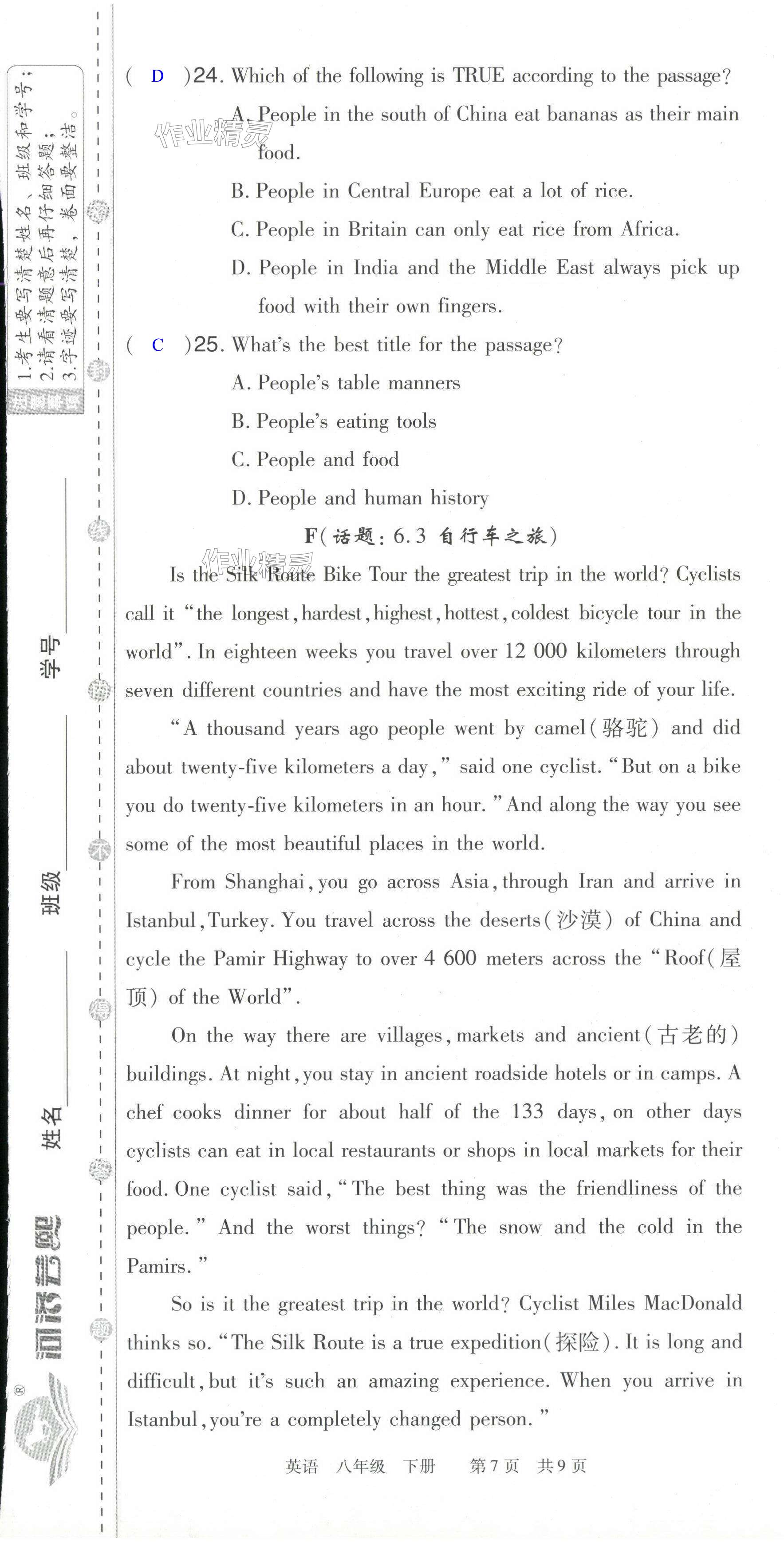 注:目前有些书本章节名称可能整理的还不是很完善,但都是按照顺序排列的,请同学们按照顺序仔细查找。练习册 2024年期末考试必刷卷八年级英语下册人教版洛阳专版 答案主要是用来给同学们做完题方便对答案用的,请勿直接抄袭。