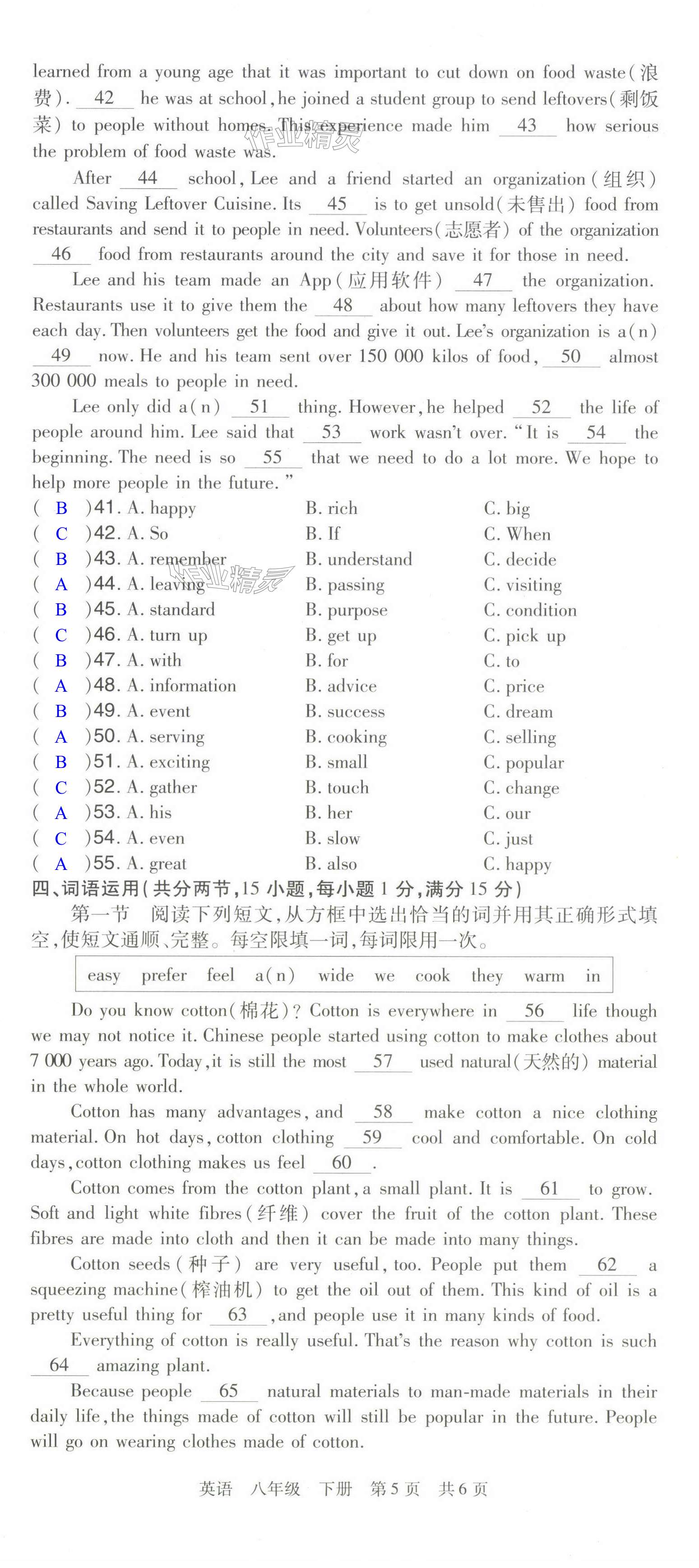 注:目前有些书本章节名称可能整理的还不是很完善,但都是按照顺序排列的,请同学们按照顺序仔细查找。练习册 2024年期末考试必刷卷八年级英语下册人教版洛阳专版 答案主要是用来给同学们做完题方便对答案用的,请勿直接抄袭。