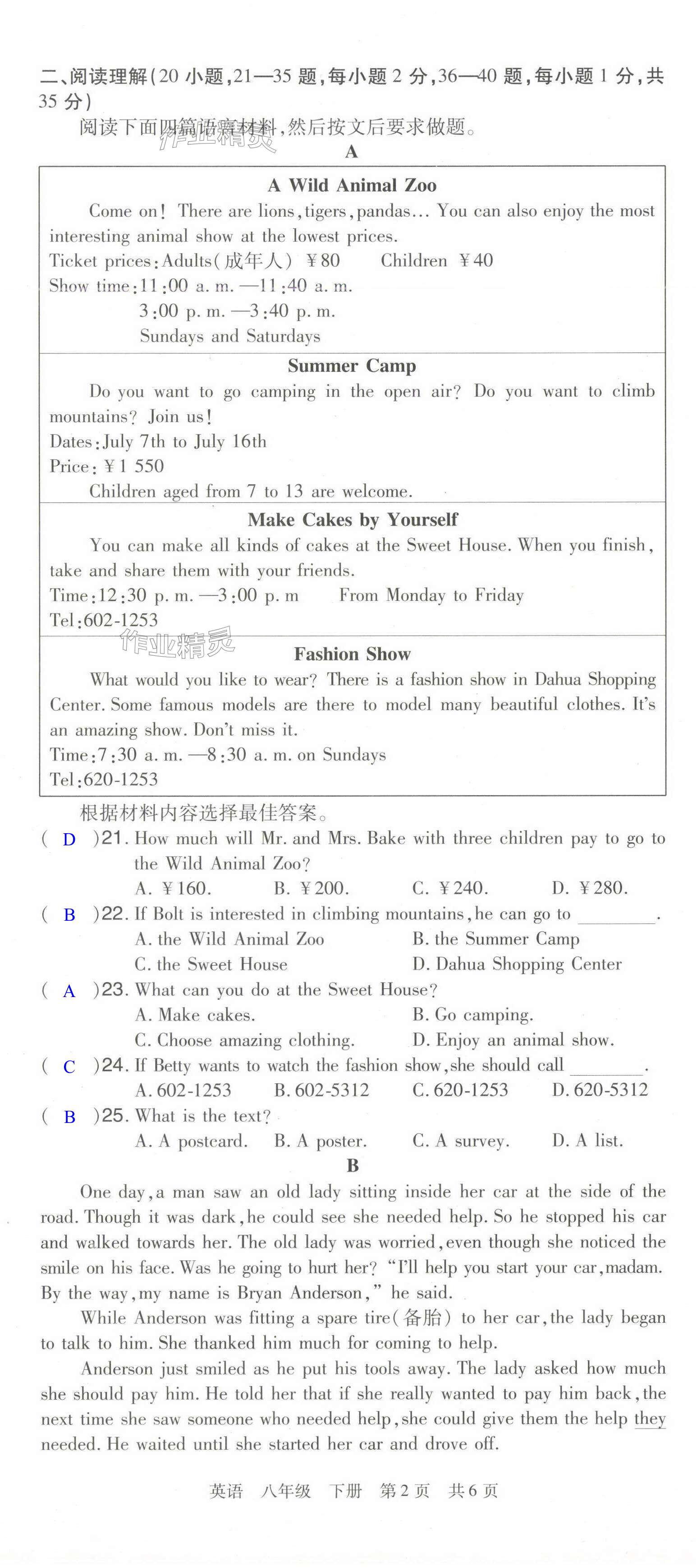 注:目前有些书本章节名称可能整理的还不是很完善,但都是按照顺序排列的,请同学们按照顺序仔细查找。练习册 2024年期末考试必刷卷八年级英语下册人教版洛阳专版 答案主要是用来给同学们做完题方便对答案用的,请勿直接抄袭。