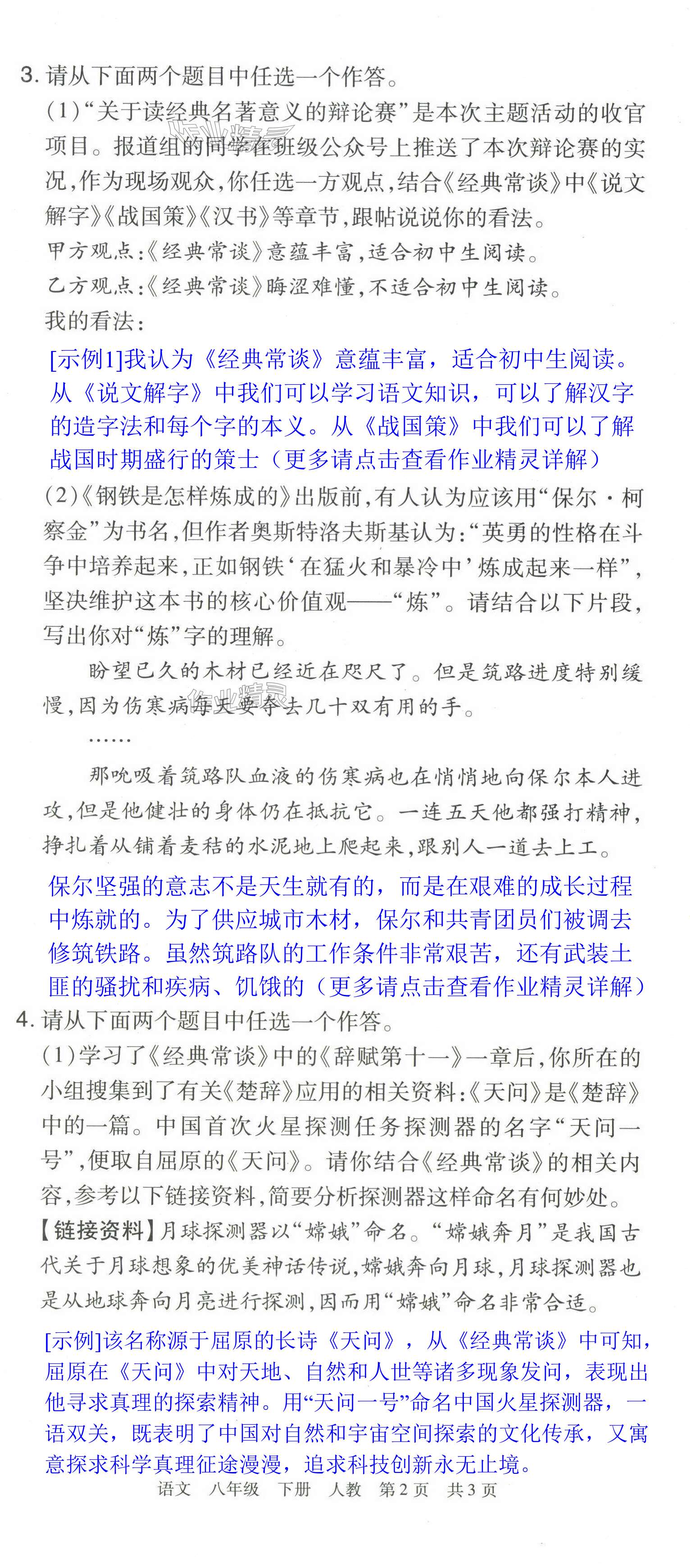 注:目前有些书本章节名称可能整理的还不是很完善,但都是按照顺序排列的,请同学们按照顺序仔细查找。练习册 2024年期末考试必刷卷八年级语文下册人教版洛阳专版 答案主要是用来给同学们做完题方便对答案用的,请勿直接抄袭。