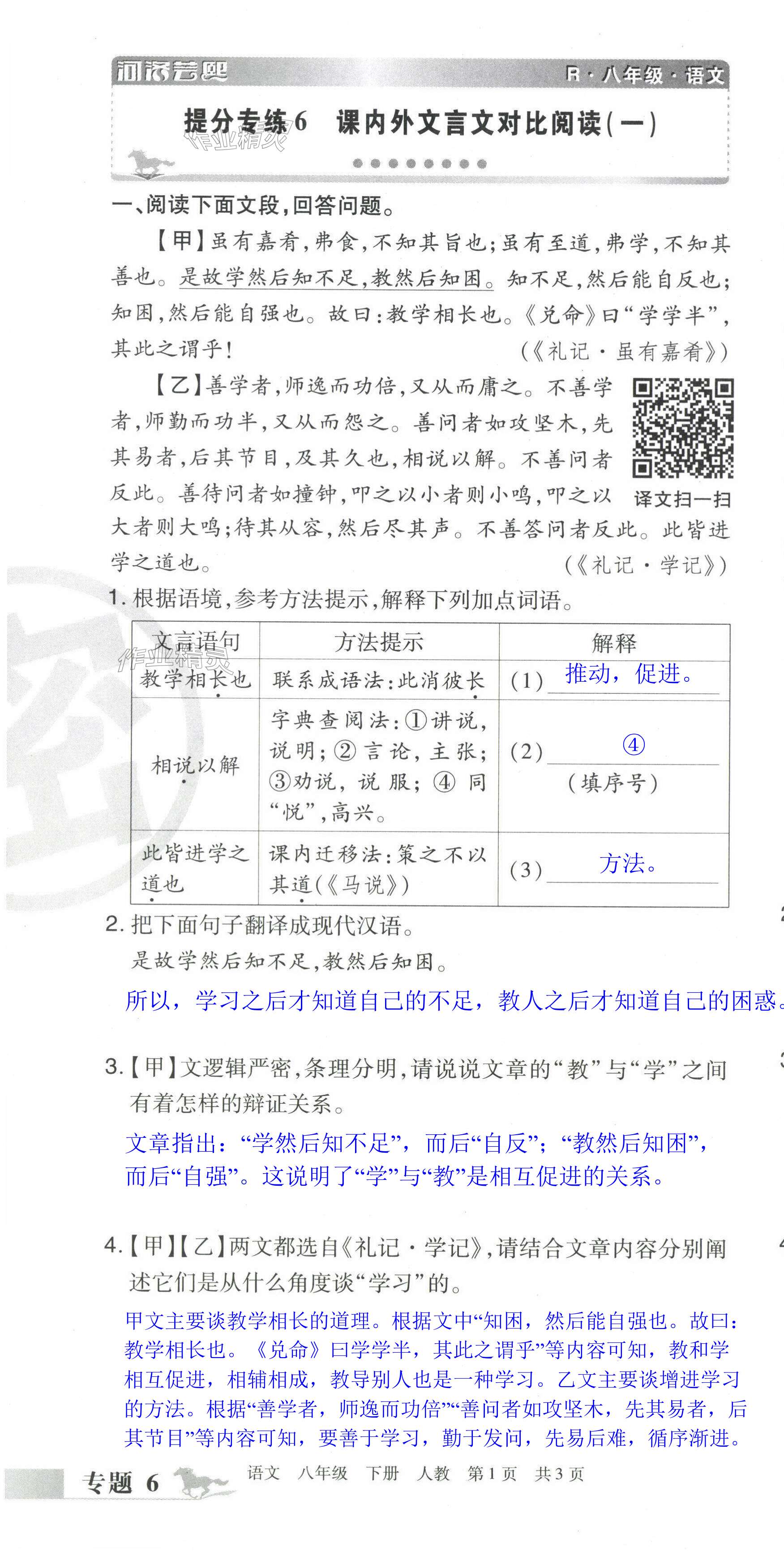 注:目前有些书本章节名称可能整理的还不是很完善,但都是按照顺序排列的,请同学们按照顺序仔细查找。练习册 2024年期末考试必刷卷八年级语文下册人教版洛阳专版 答案主要是用来给同学们做完题方便对答案用的,请勿直接抄袭。