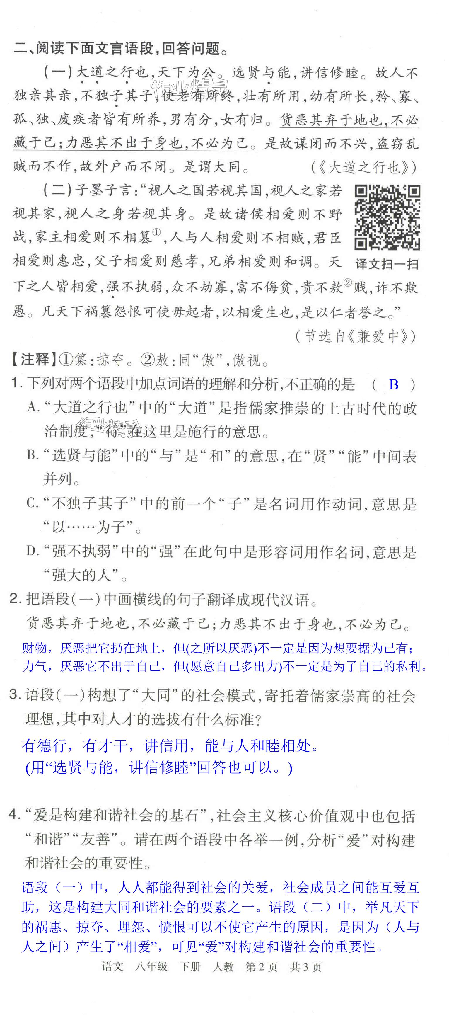注:目前有些书本章节名称可能整理的还不是很完善,但都是按照顺序排列的,请同学们按照顺序仔细查找。练习册 2024年期末考试必刷卷八年级语文下册人教版洛阳专版 答案主要是用来给同学们做完题方便对答案用的,请勿直接抄袭。