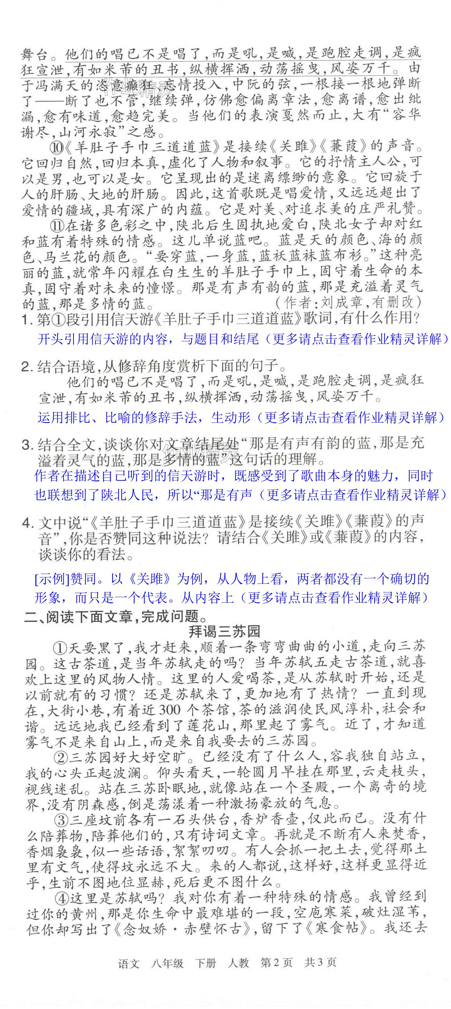 注:目前有些书本章节名称可能整理的还不是很完善,但都是按照顺序排列的,请同学们按照顺序仔细查找。练习册 2024年期末考试必刷卷八年级语文下册人教版洛阳专版 答案主要是用来给同学们做完题方便对答案用的,请勿直接抄袭。
