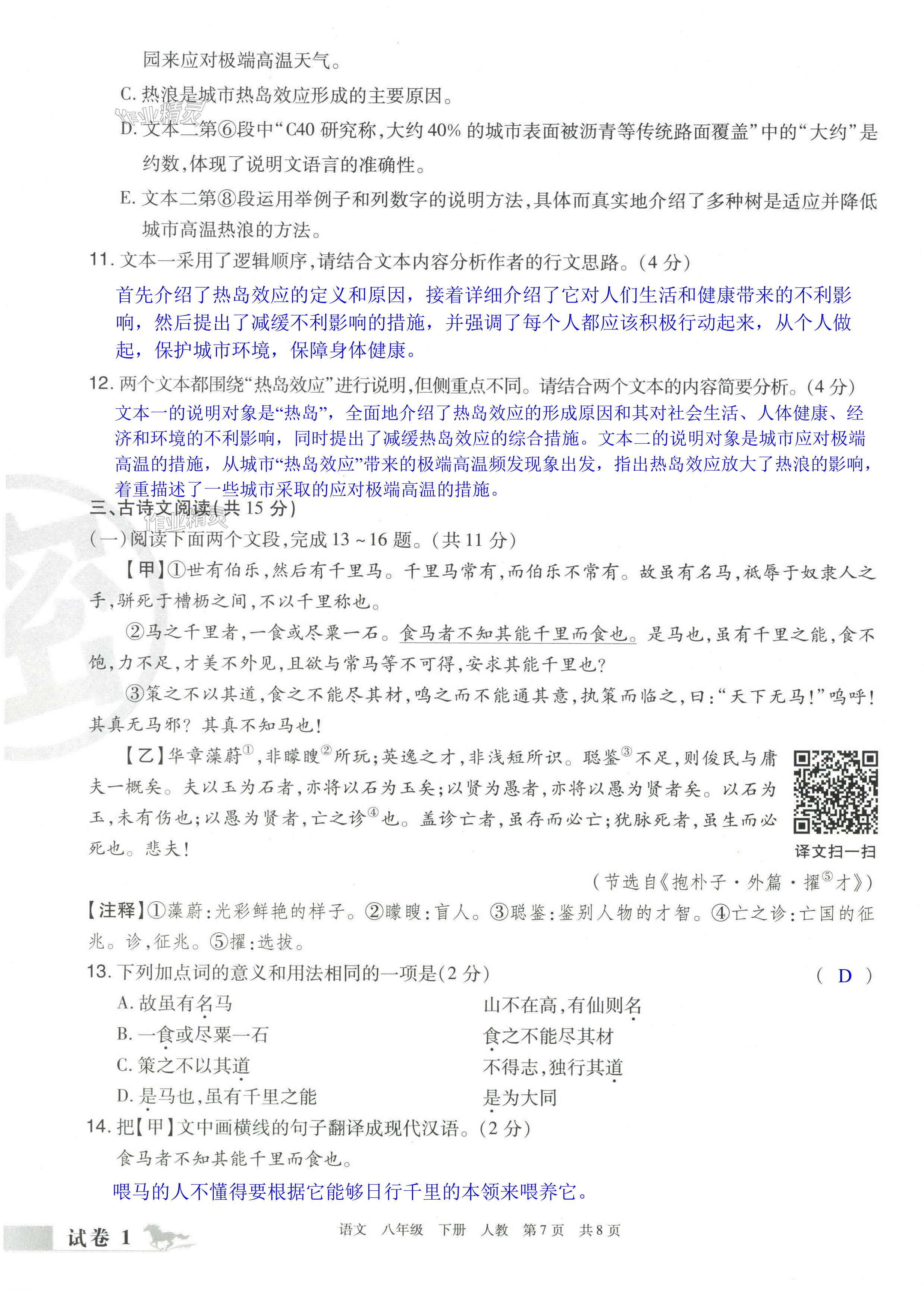注:目前有些书本章节名称可能整理的还不是很完善,但都是按照顺序排列的,请同学们按照顺序仔细查找。练习册 2024年期末考试必刷卷八年级语文下册人教版洛阳专版 答案主要是用来给同学们做完题方便对答案用的,请勿直接抄袭。