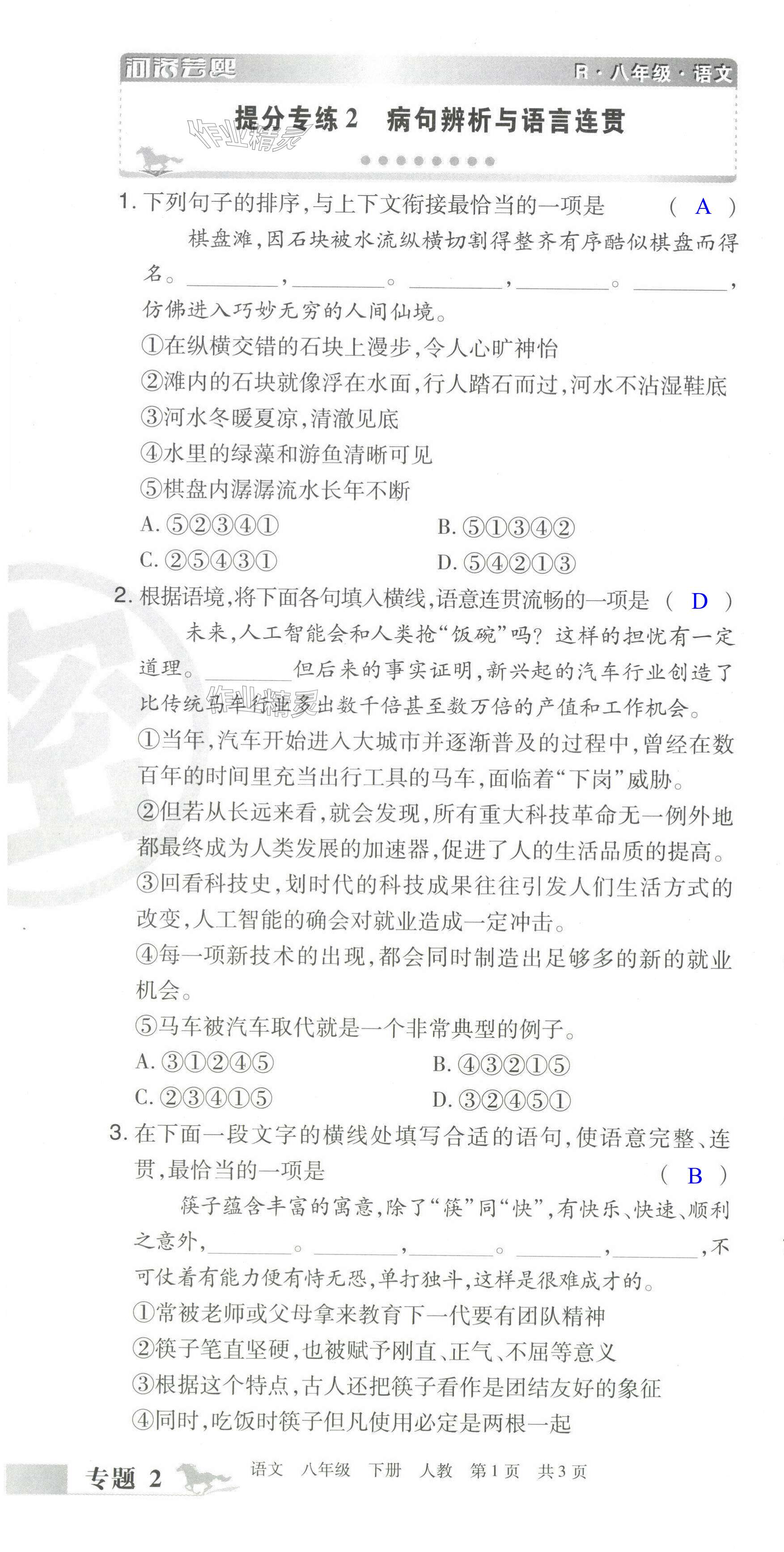注:目前有些书本章节名称可能整理的还不是很完善,但都是按照顺序排列的,请同学们按照顺序仔细查找。练习册 2024年期末考试必刷卷八年级语文下册人教版洛阳专版 答案主要是用来给同学们做完题方便对答案用的,请勿直接抄袭。
