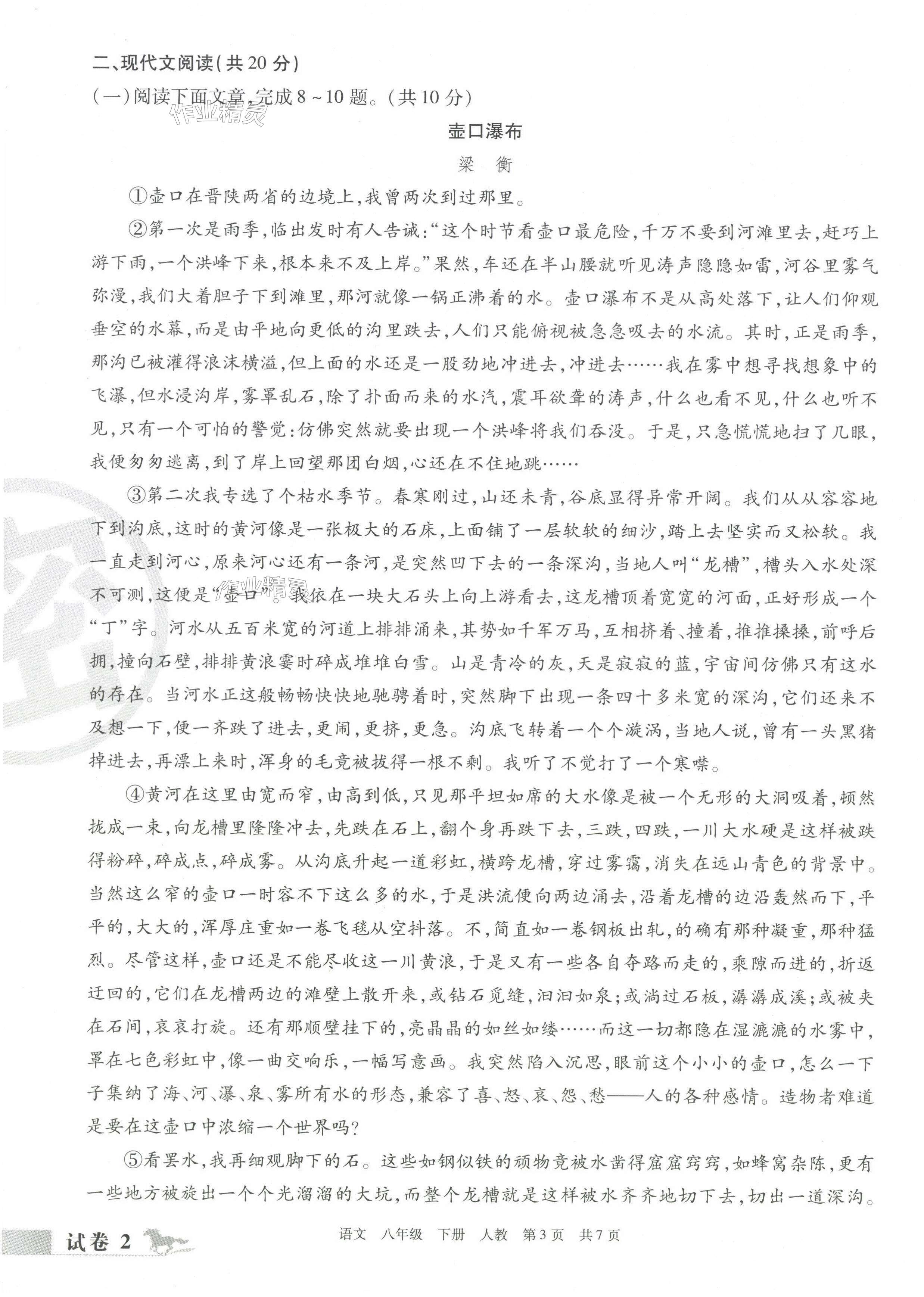 注:目前有些书本章节名称可能整理的还不是很完善,但都是按照顺序排列的,请同学们按照顺序仔细查找。练习册 2024年期末考试必刷卷八年级语文下册人教版洛阳专版 答案主要是用来给同学们做完题方便对答案用的,请勿直接抄袭。