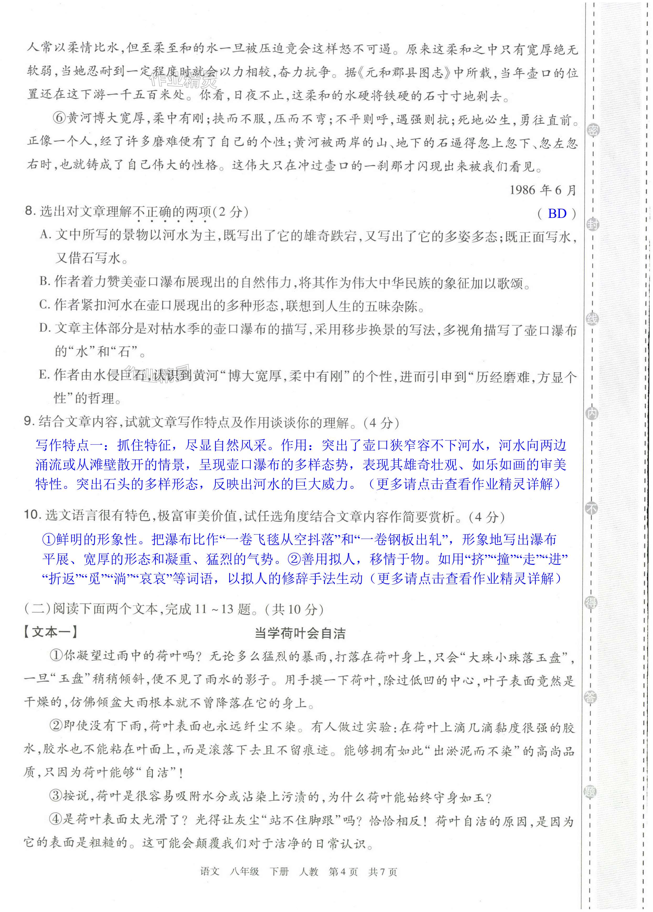 注:目前有些书本章节名称可能整理的还不是很完善,但都是按照顺序排列的,请同学们按照顺序仔细查找。练习册 2024年期末考试必刷卷八年级语文下册人教版洛阳专版 答案主要是用来给同学们做完题方便对答案用的,请勿直接抄袭。