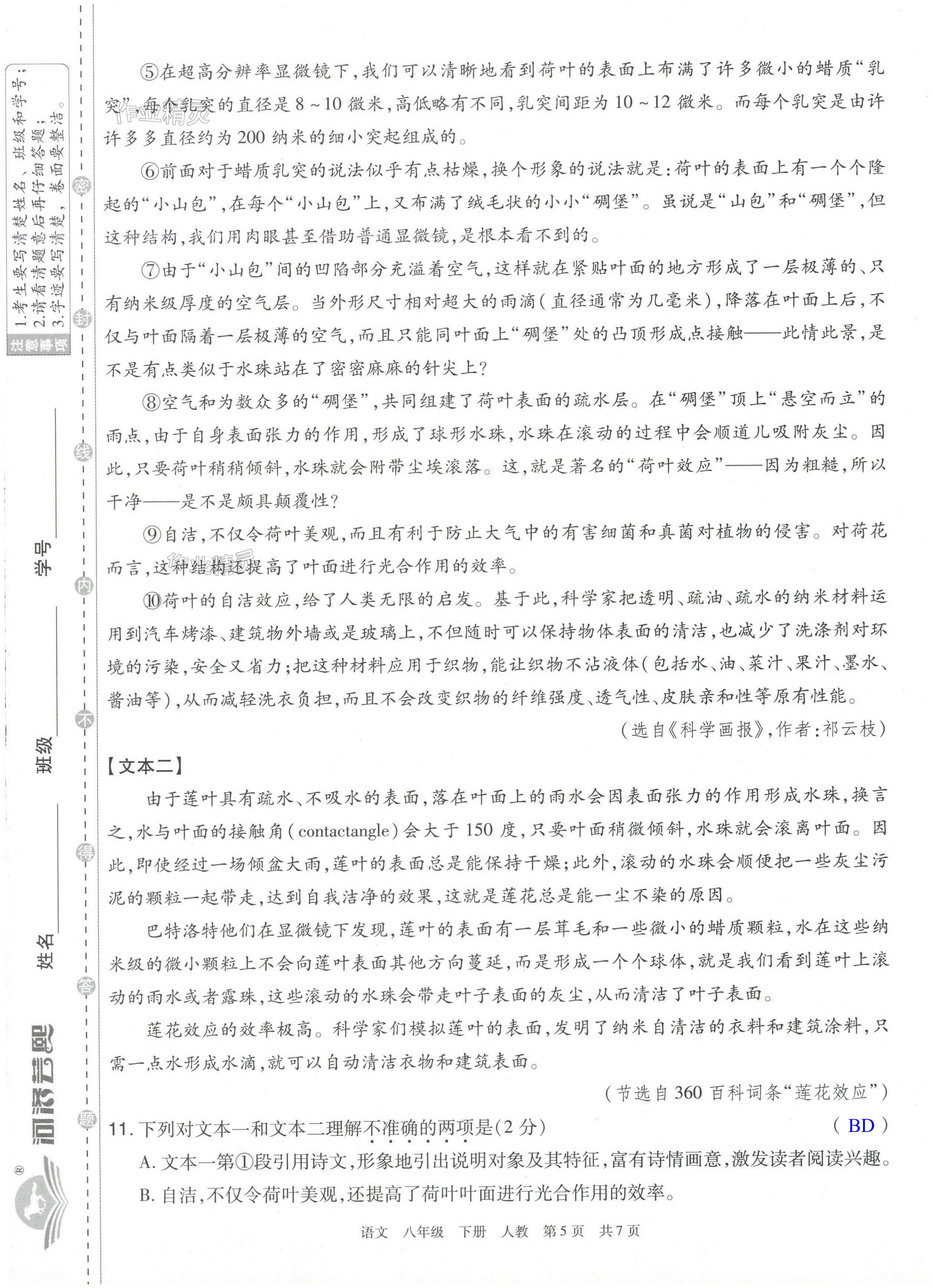 注:目前有些书本章节名称可能整理的还不是很完善,但都是按照顺序排列的,请同学们按照顺序仔细查找。练习册 2024年期末考试必刷卷八年级语文下册人教版洛阳专版 答案主要是用来给同学们做完题方便对答案用的,请勿直接抄袭。