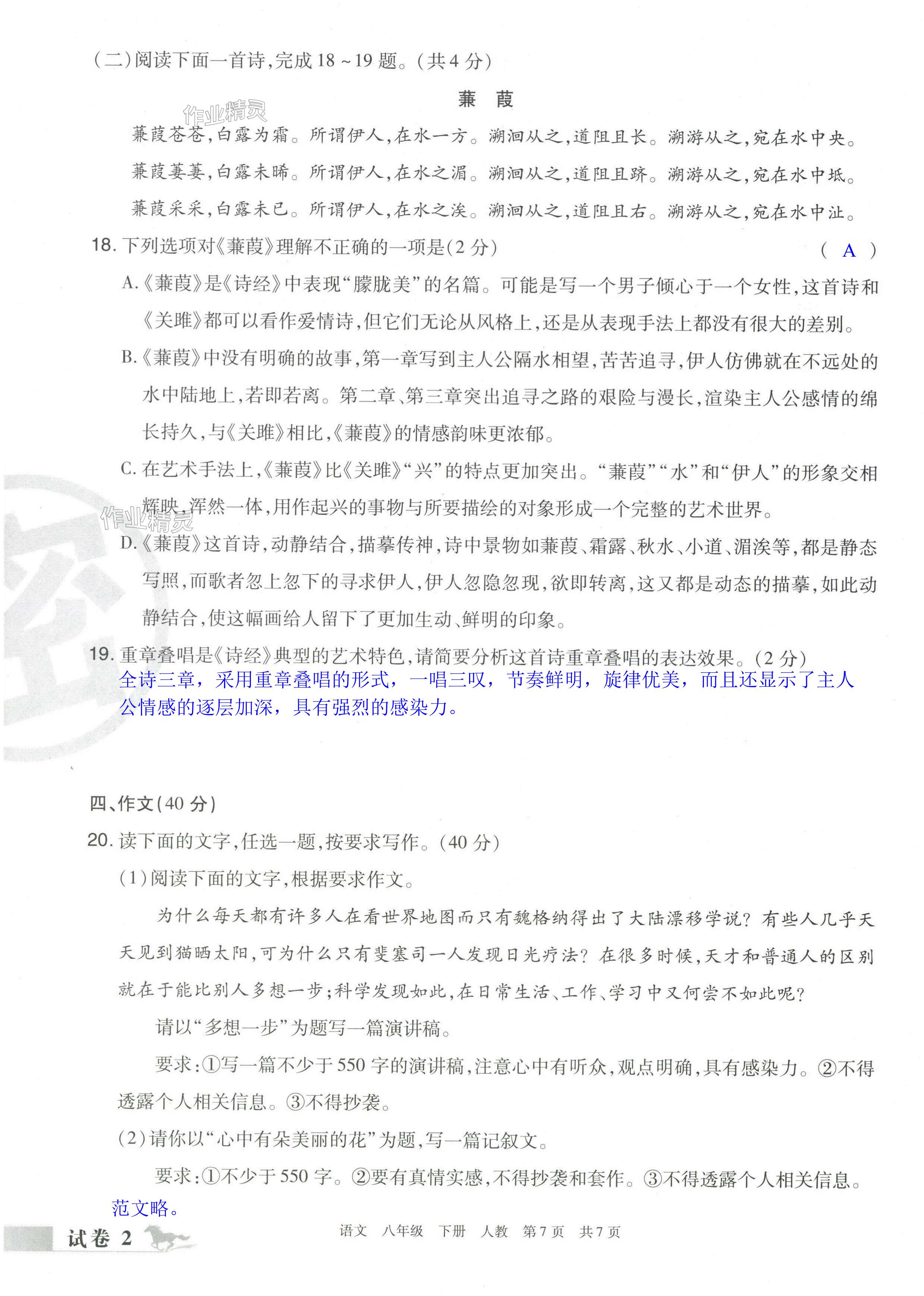 注:目前有些书本章节名称可能整理的还不是很完善,但都是按照顺序排列的,请同学们按照顺序仔细查找。练习册 2024年期末考试必刷卷八年级语文下册人教版洛阳专版 答案主要是用来给同学们做完题方便对答案用的,请勿直接抄袭。