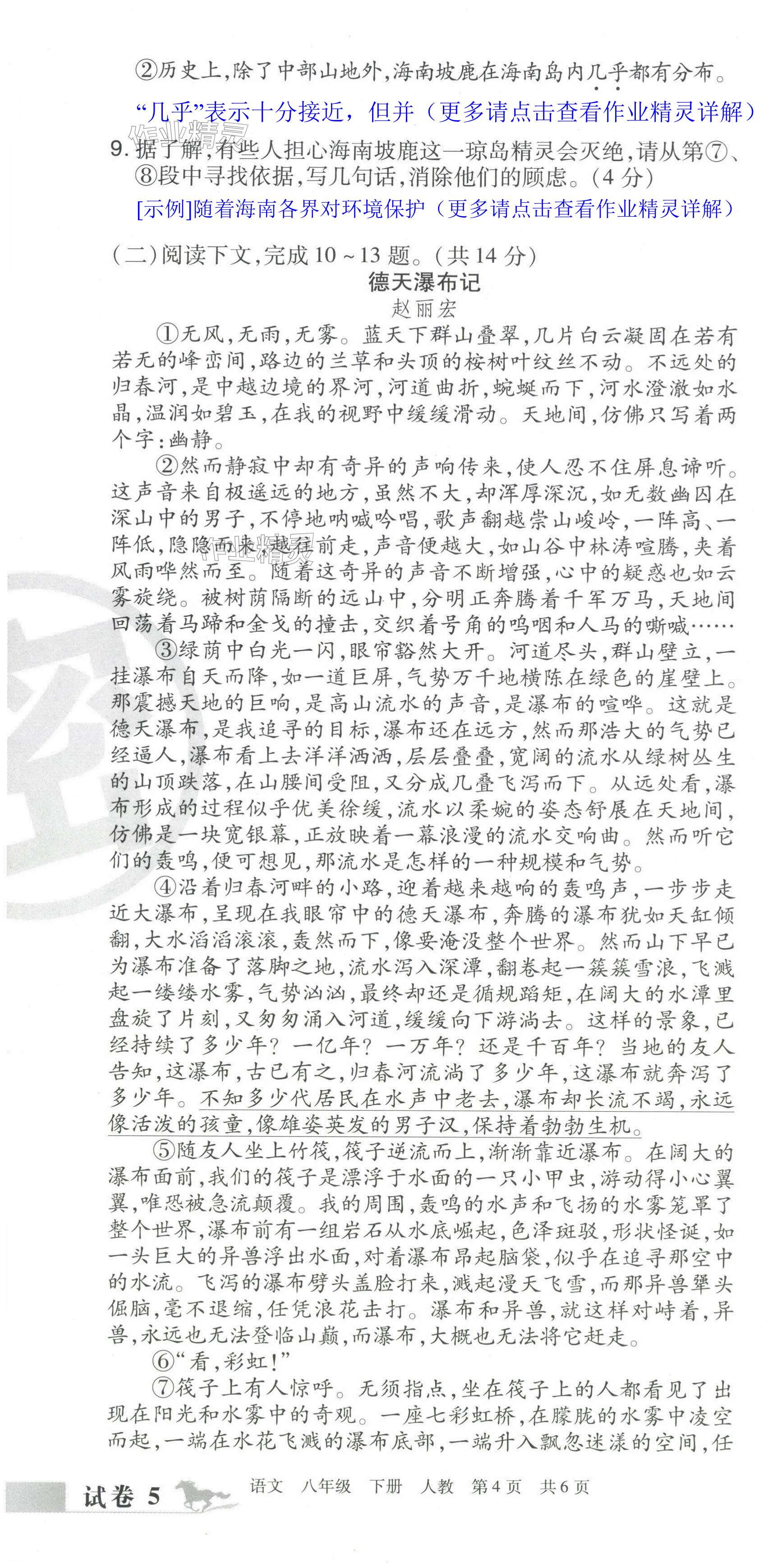 注:目前有些书本章节名称可能整理的还不是很完善,但都是按照顺序排列的,请同学们按照顺序仔细查找。练习册 2024年期末考试必刷卷八年级语文下册人教版洛阳专版 答案主要是用来给同学们做完题方便对答案用的,请勿直接抄袭。
