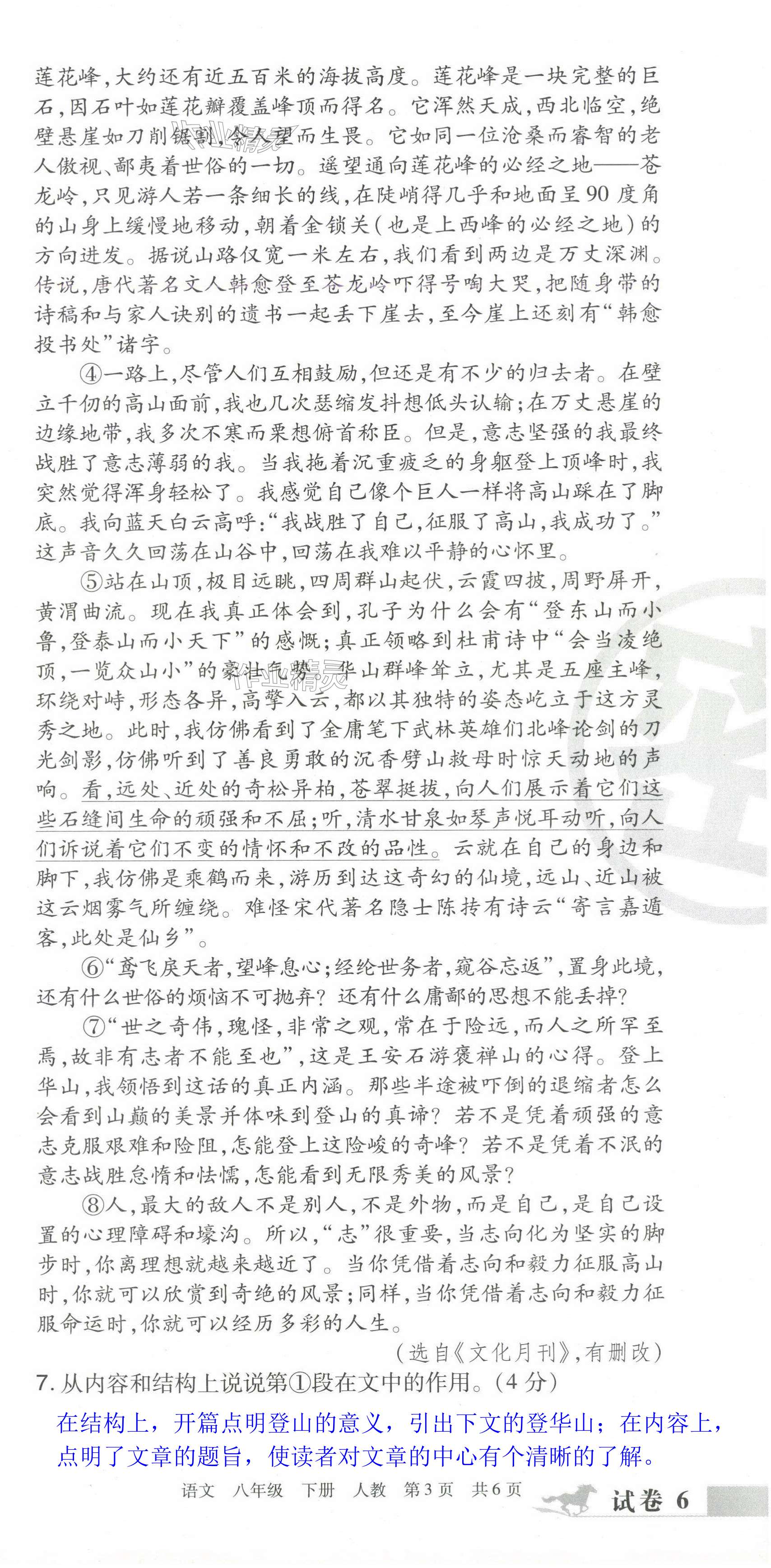 注:目前有些书本章节名称可能整理的还不是很完善,但都是按照顺序排列的,请同学们按照顺序仔细查找。练习册 2024年期末考试必刷卷八年级语文下册人教版洛阳专版 答案主要是用来给同学们做完题方便对答案用的,请勿直接抄袭。